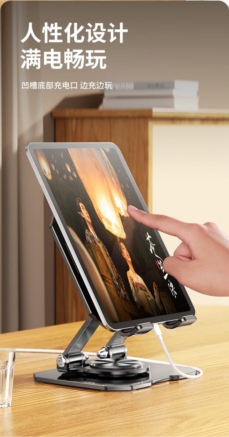 硕图平板支架ipad桌面手机支架360 多功能旋转折叠款懒人支撑架子吃鸡网课绘画金属直播视频手机通用