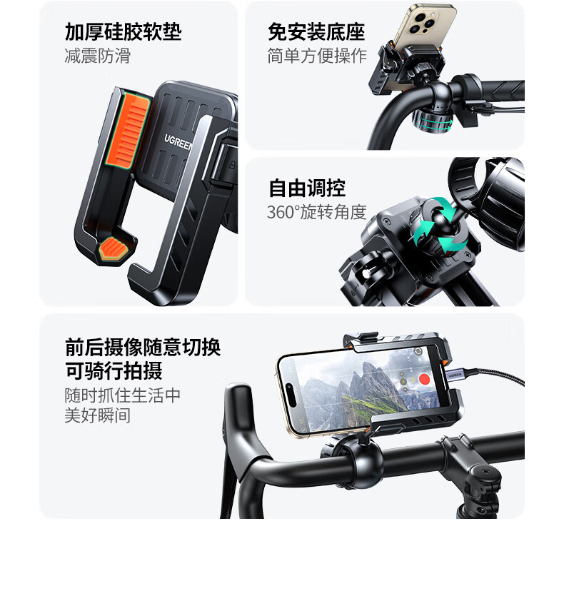 Green Alliance bicycle mobile phone holder electric vehicle navigation bracket mountain bike battery car motorcycle takeaway express navigation fixed bracket riding equipment stable and shockproof