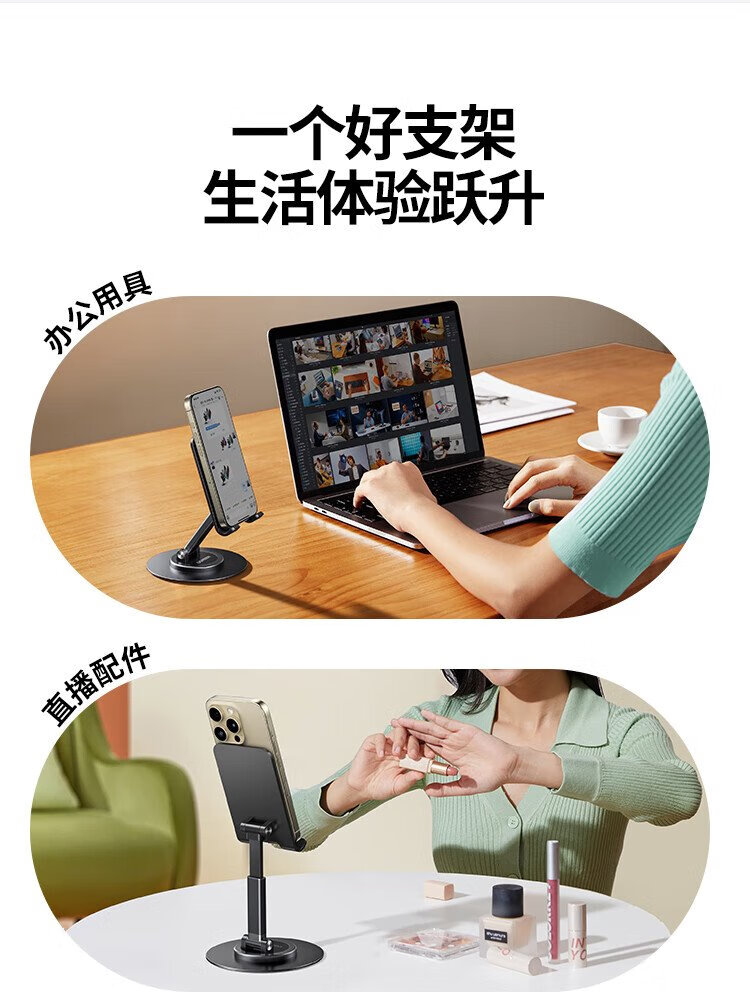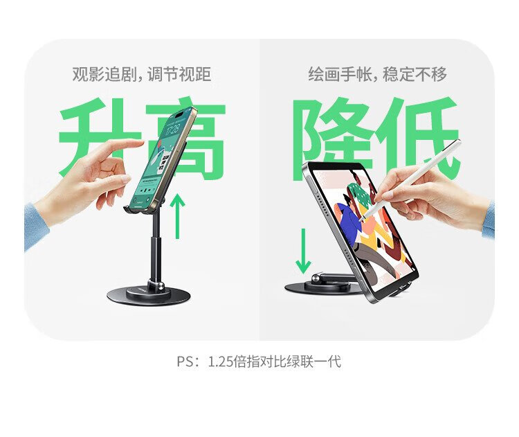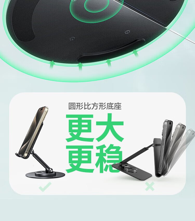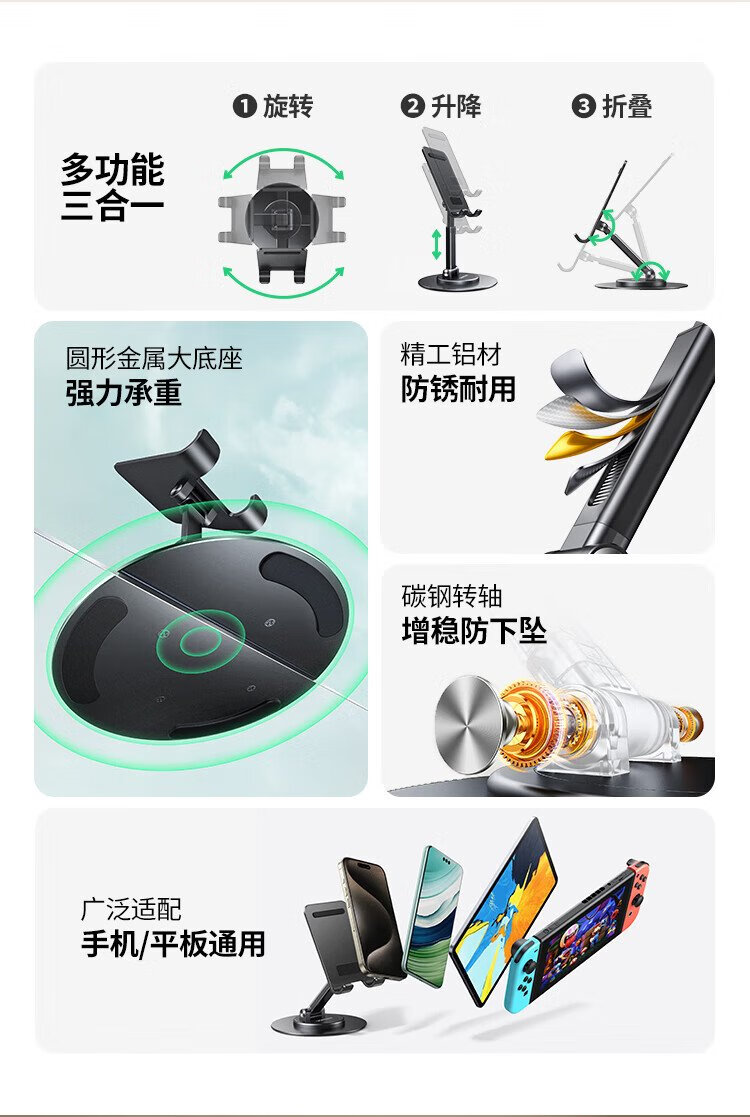 Green Link Mobile Phone Stand Desktop 360 Foldable Rotating Lift Tablet iPad Bedside Lazy Man Chasing Drama Live Broadcast Shooting Multifunctional Convenient Stand Suitable for Apple 17 Huawei