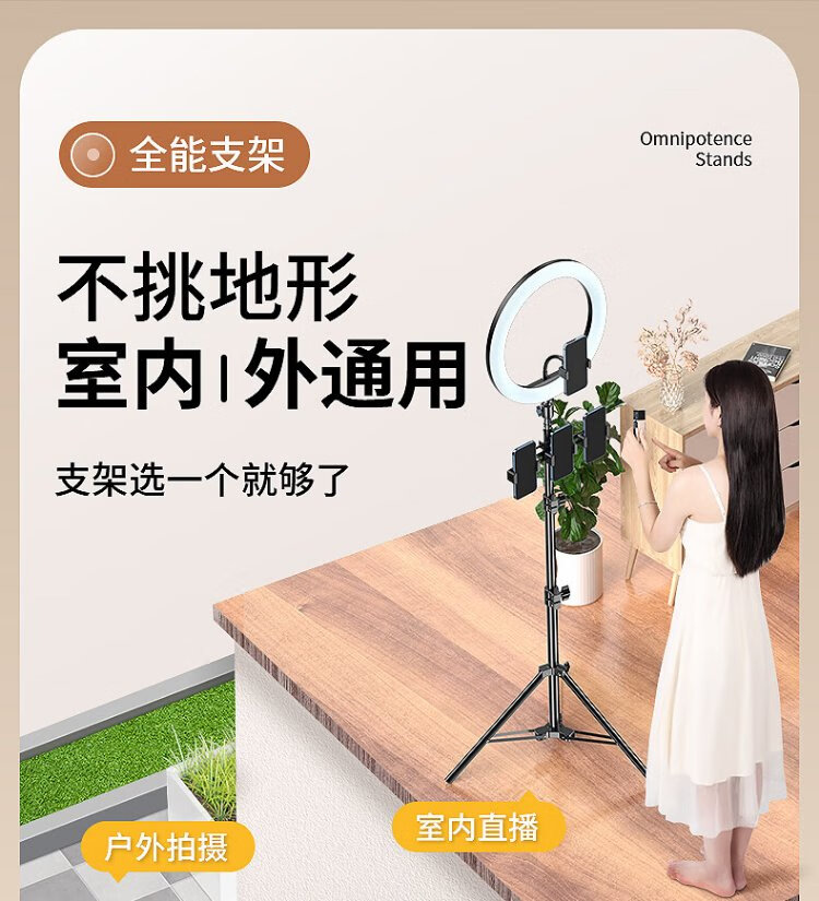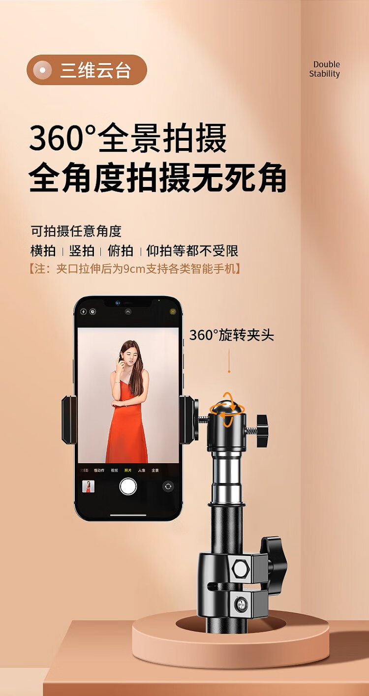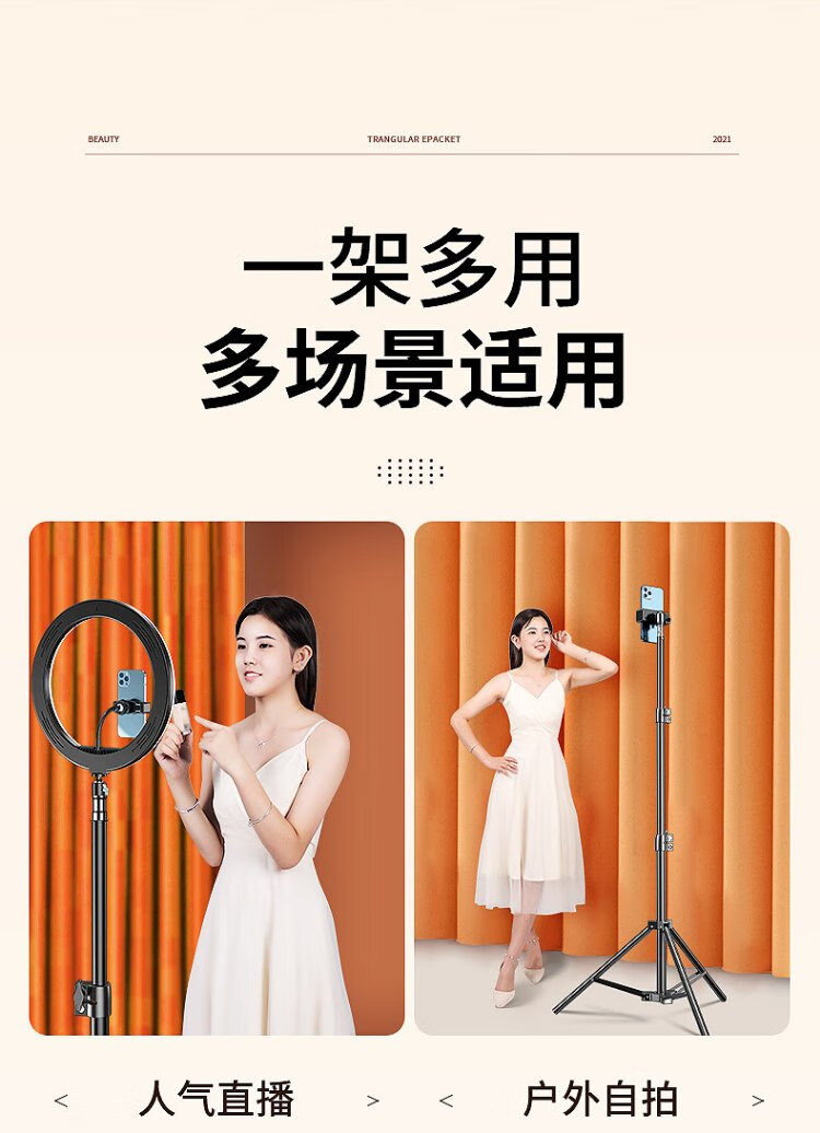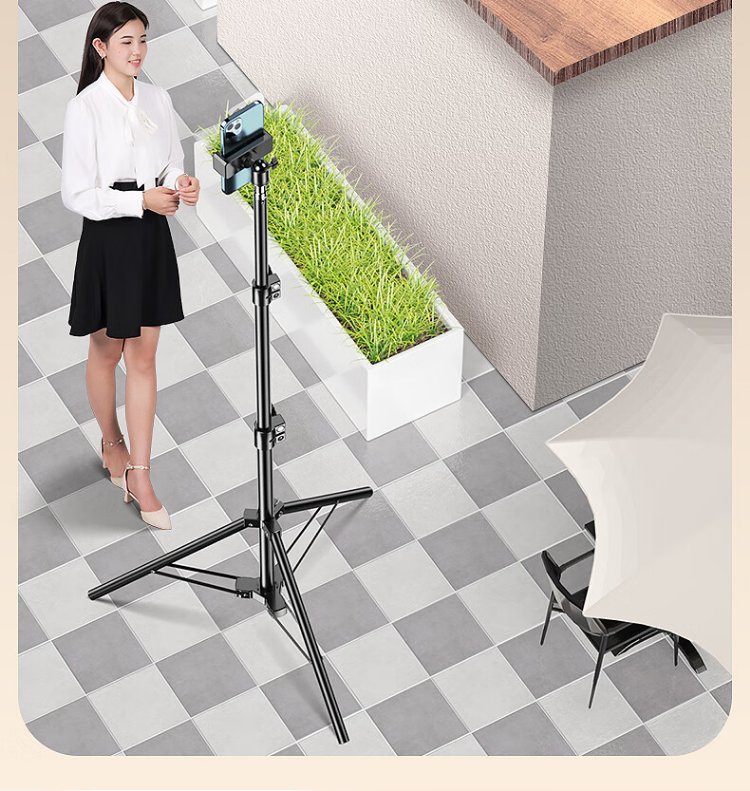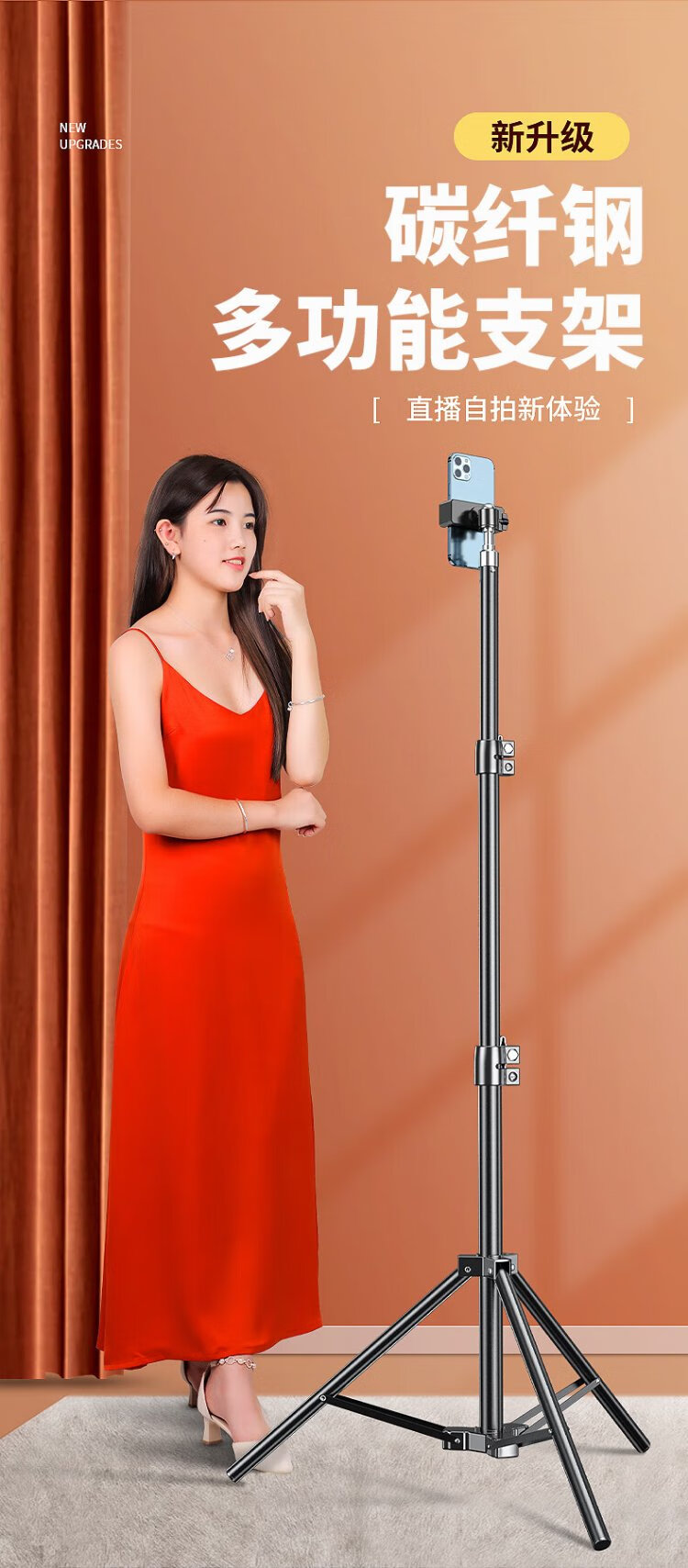 Kerunle 2.1m fire-hardened steel mobile phone stand floor-standing selfie stick tripod live network class art test vertical triangle folding stand photo video video lifting bracket