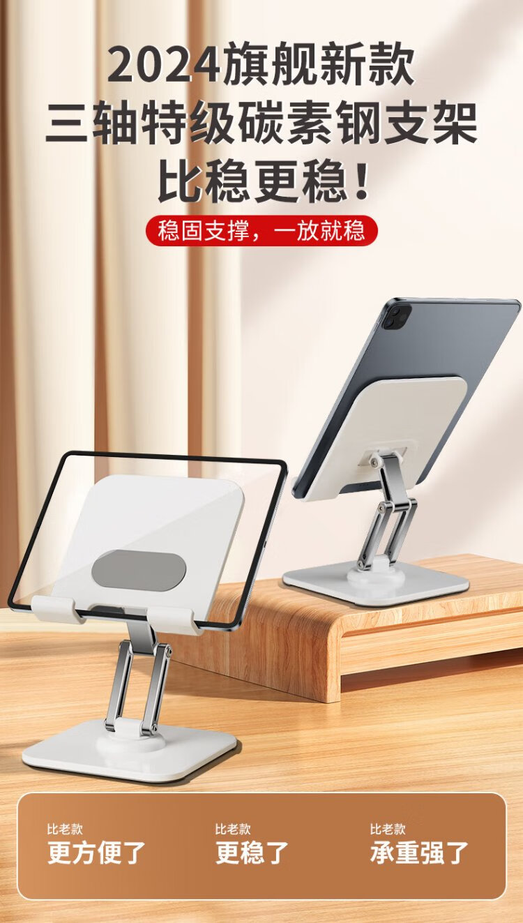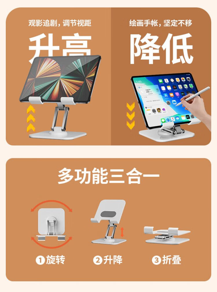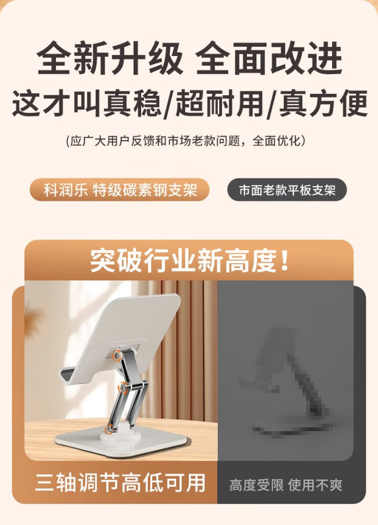 Kerunle three-axis rotation tablet stand ipad desktop mobile phone stand 360 multi-function rotating folding lazy support frame eating chicken online class painting metal live broadcast