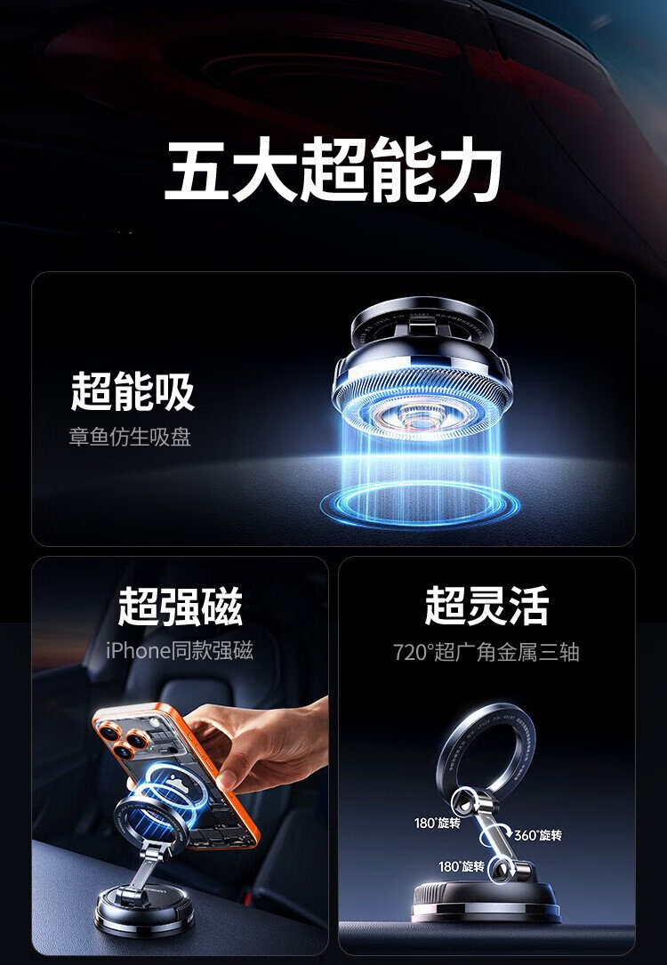 绿联车载手机支架汽车专用MagSafe磁吸真空吸附吸盘式中控台导航桌面支撑架适用苹果17华为小米手机