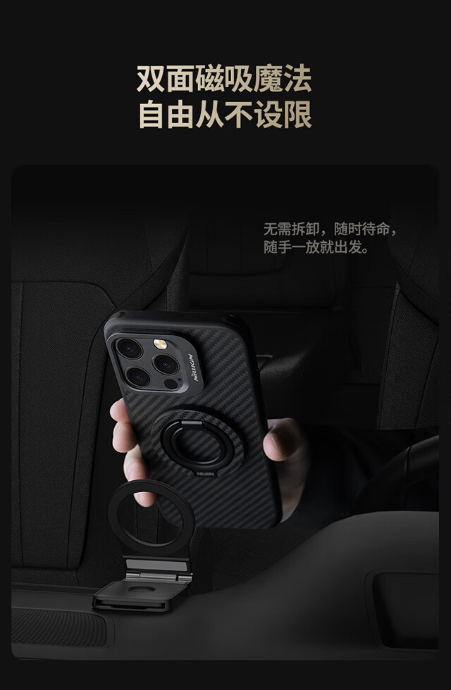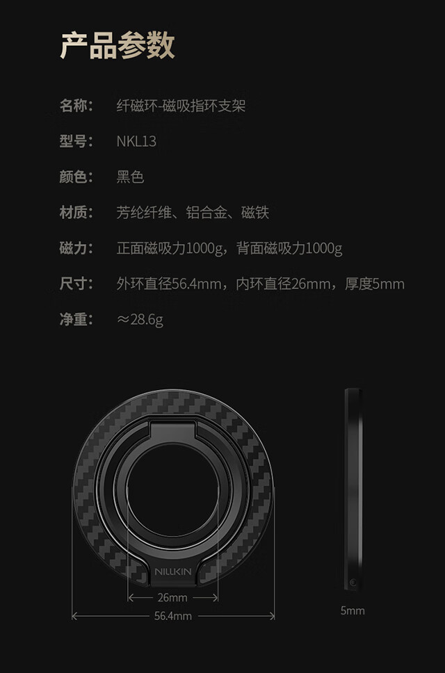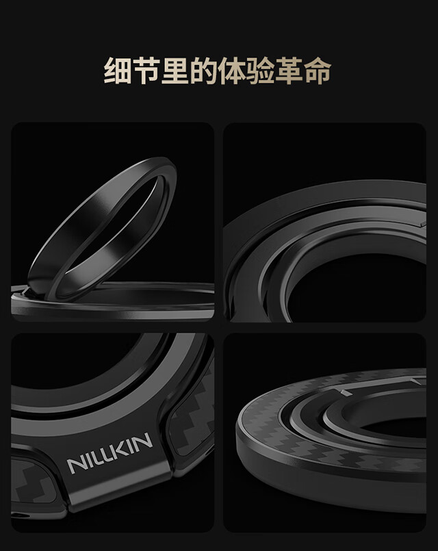 Nelkin Handy-Magnethalter, Ringschnalle, Kevlar, doppelseitiger magnetischer iPhone17-Halter, MagSafe-Aluminiumlegierung, 360 Grad drehbarer Desktop, fauler Apple Xiaomi-Faser-Magnetring, schwarz