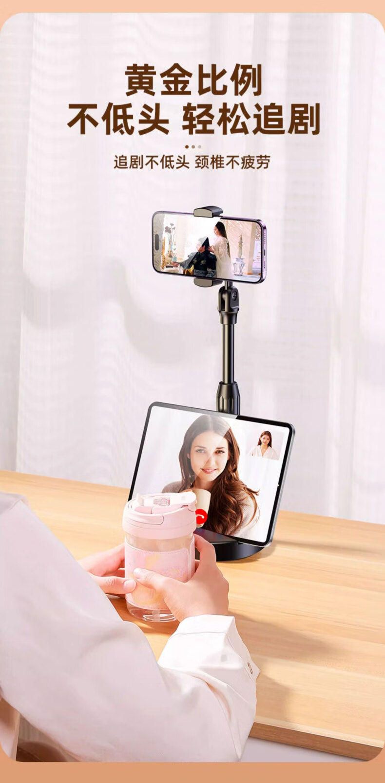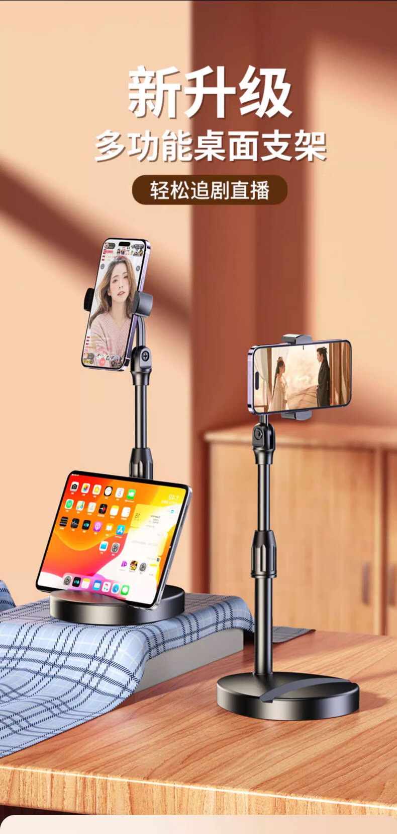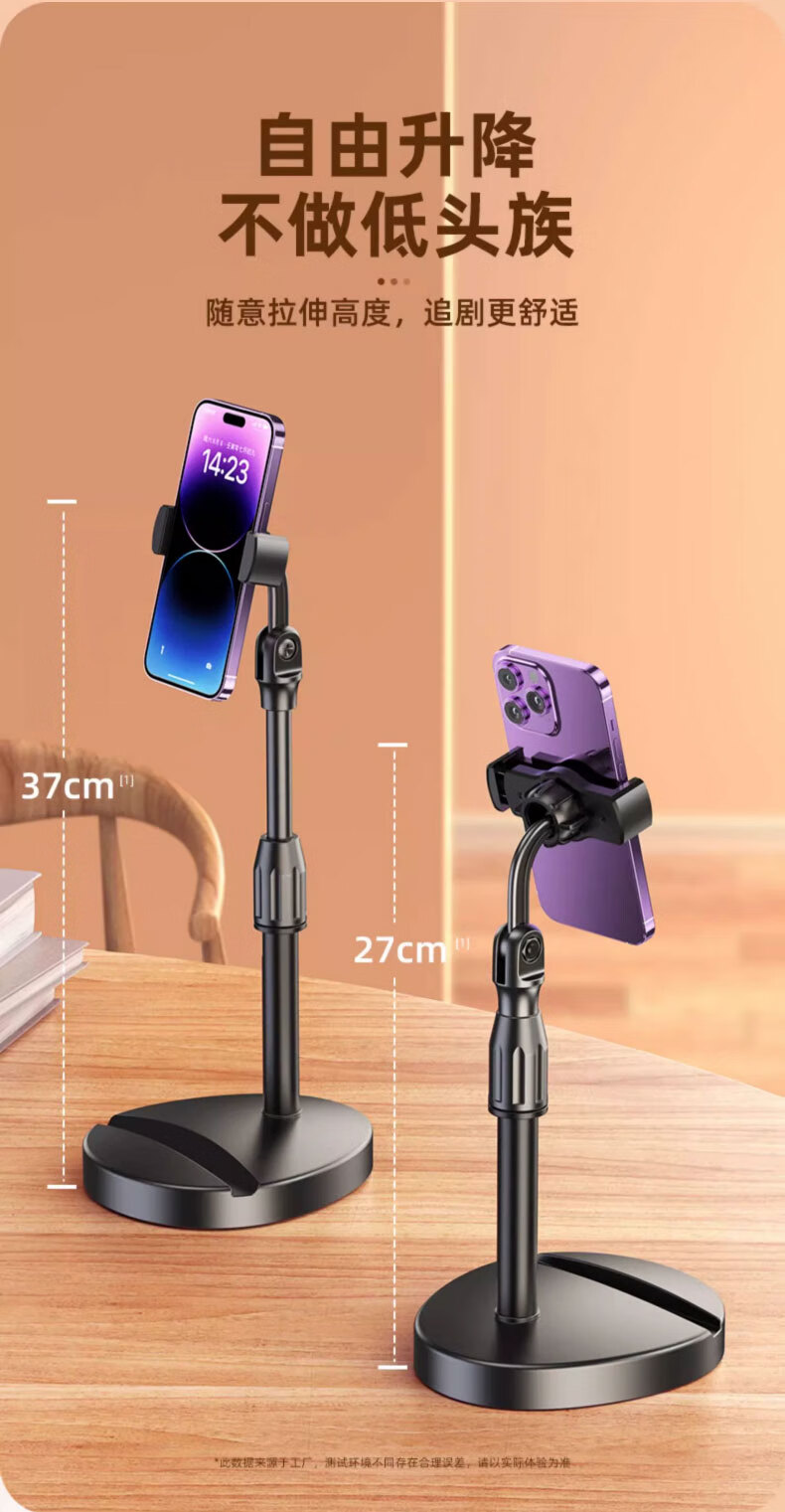 Weighted liftable mobile phone stand desktop live streaming stand exam online class multifunctional telescopic adjustment office student dormitory universal drama chasing artifact black stand 360 rotation weighted base
