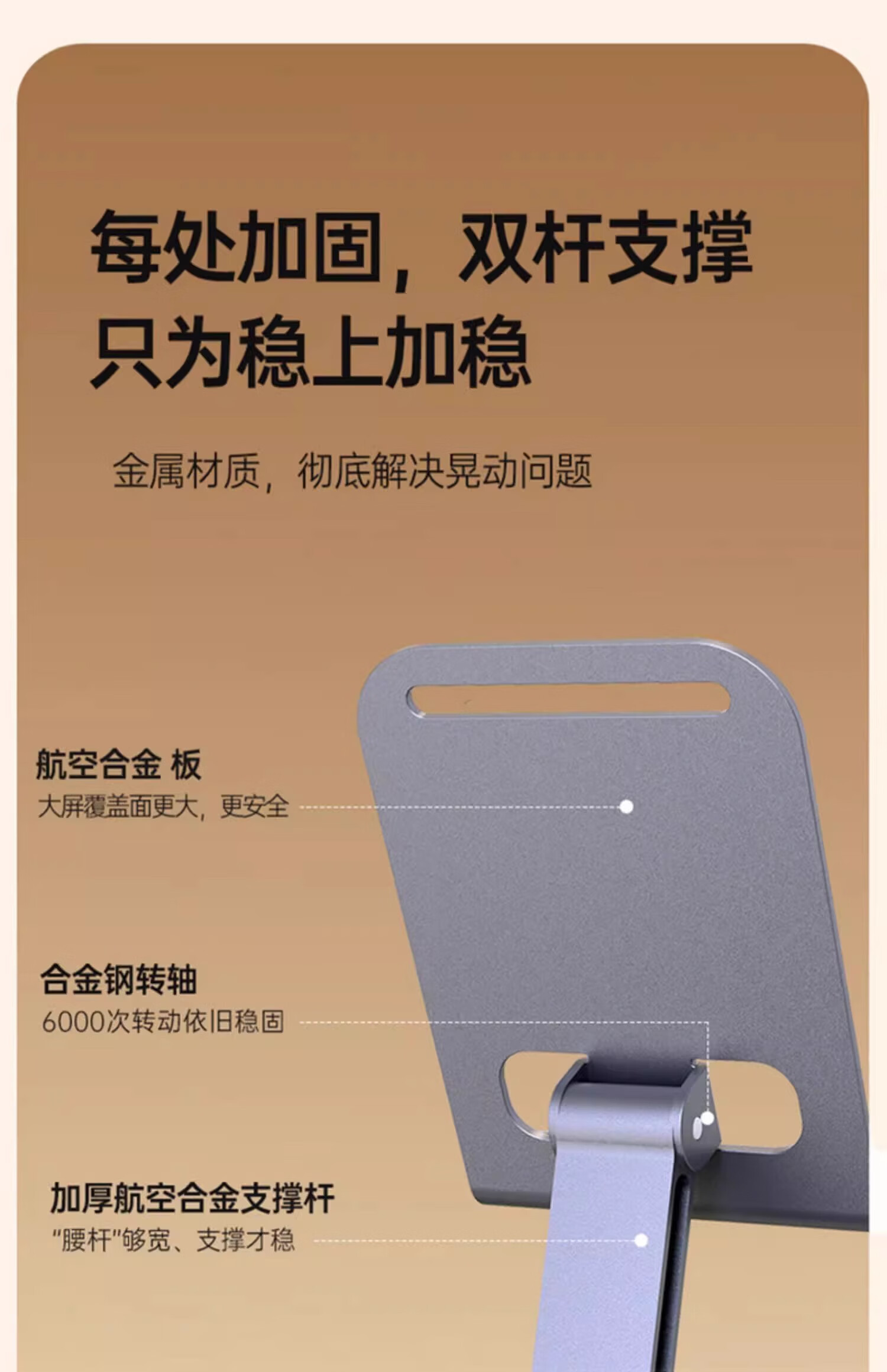Shuotu mobile phone stand tablet iPad desktop lazy stand 360-degree rotation adjustable lifting live broadcast special mobile phone stand shooting photo office multi-functional support stand advanced purple metal 720 rotation丨folding portable