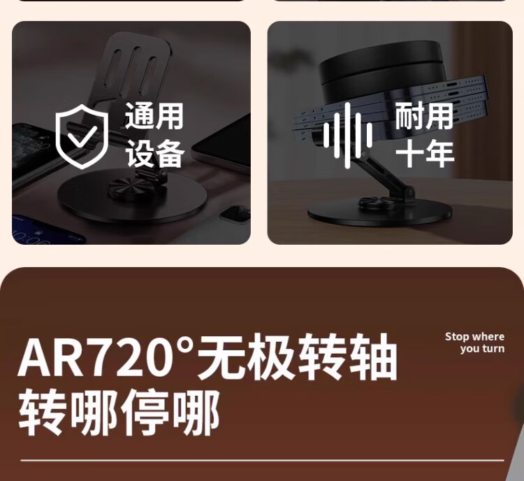 All-metal mobile phone stand 360-degree rotating desktop lazy stand adjustable suitable for Apple 17 Huawei Xiaomi folding rotating multi-functional live broadcast drama chasing stand Special model-Purple All-metal 360 rotating folding