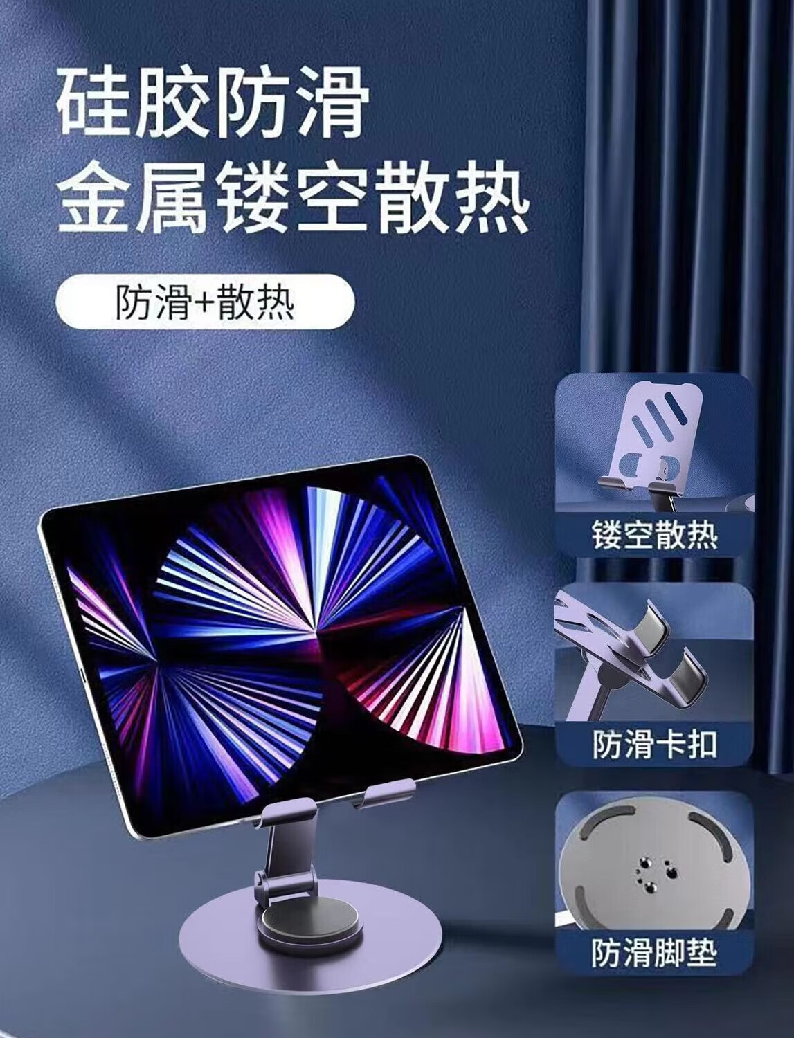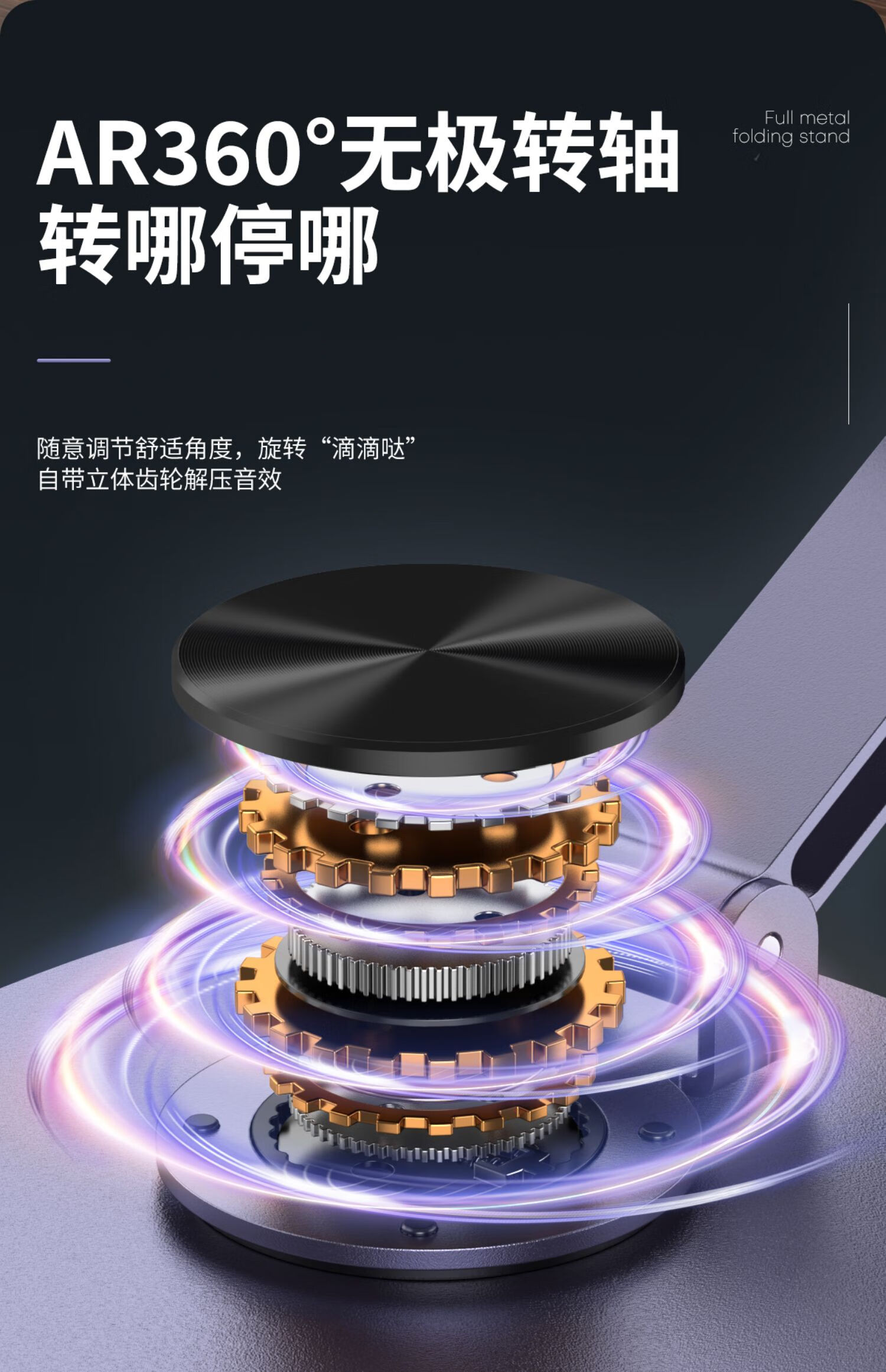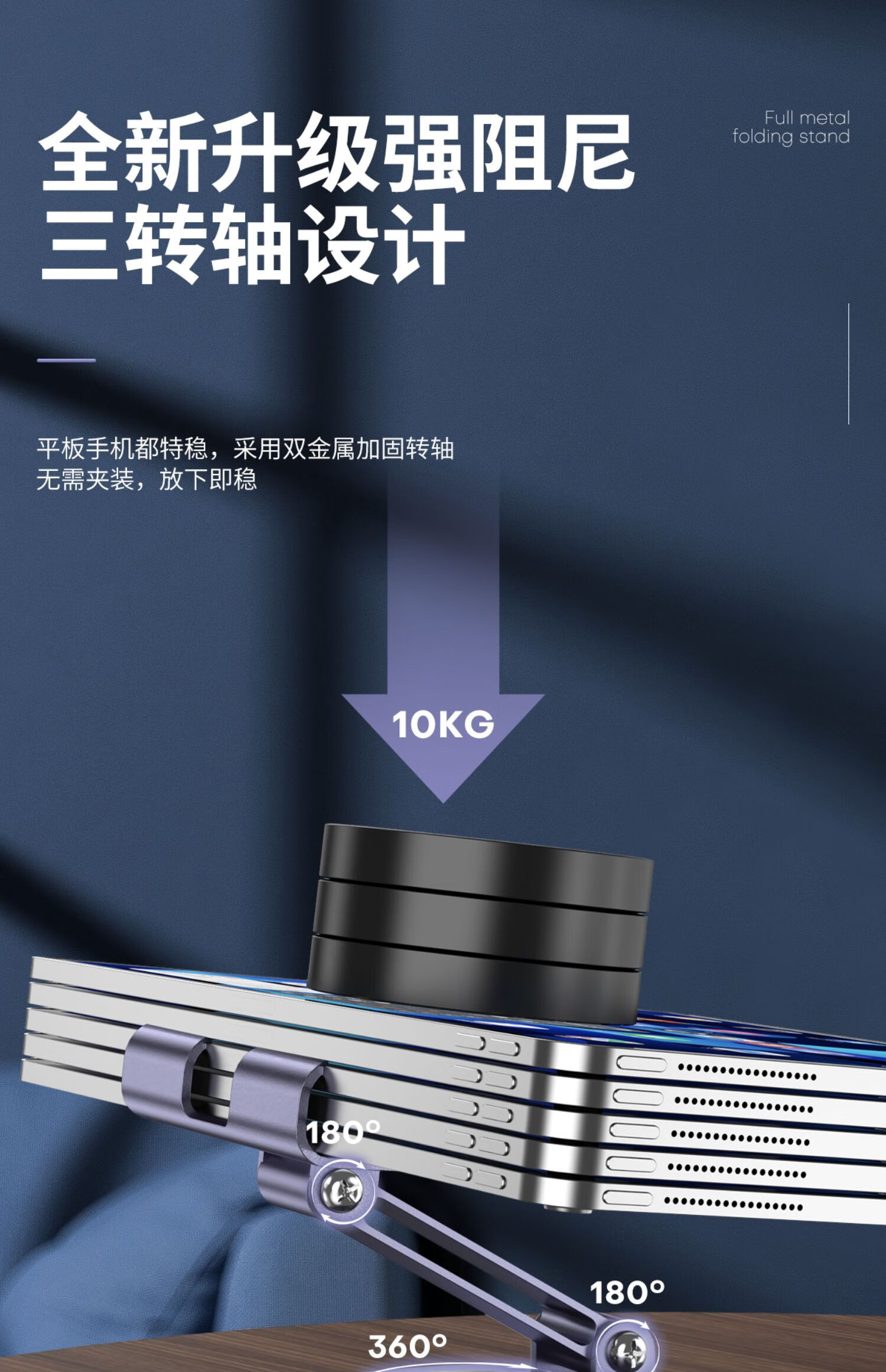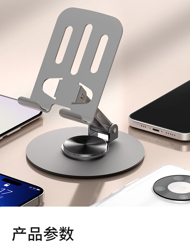 All-metal 360-degree rotating mobile phone stand mechanical folding desktop tablet universal Apple 17 Huawei mobile phone chasing drama lazy live broadcast portable special model-slash hollow gray full metal 360 rotation and folding