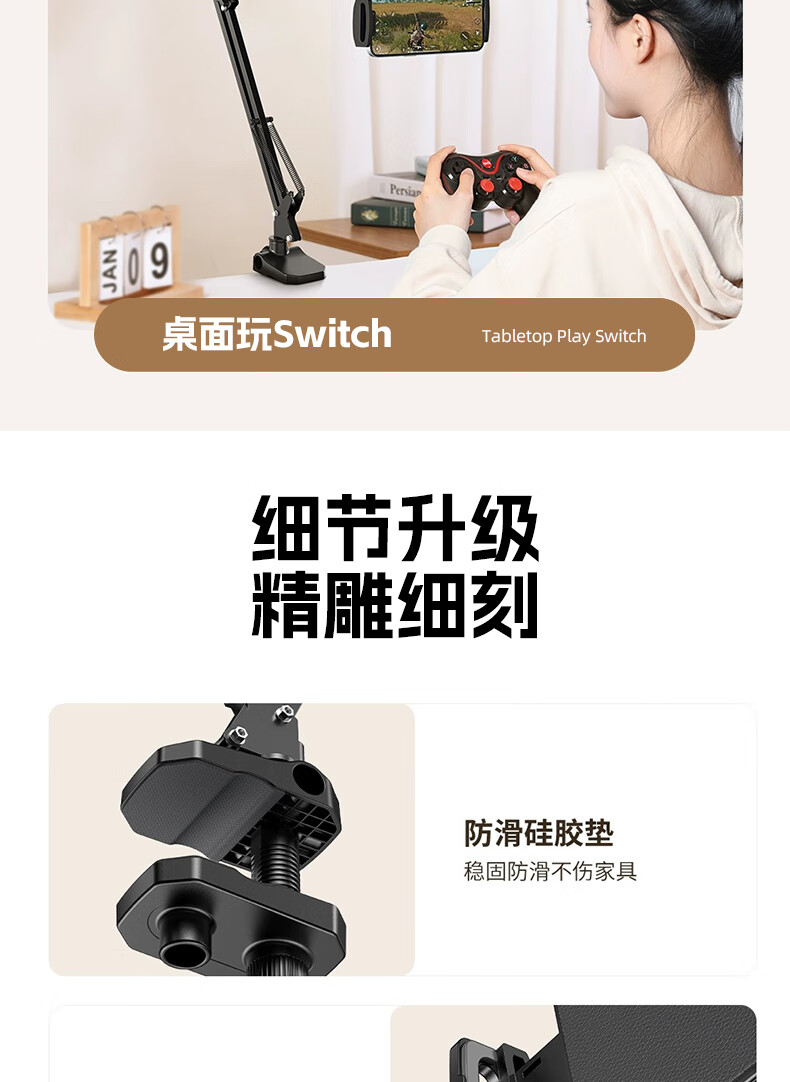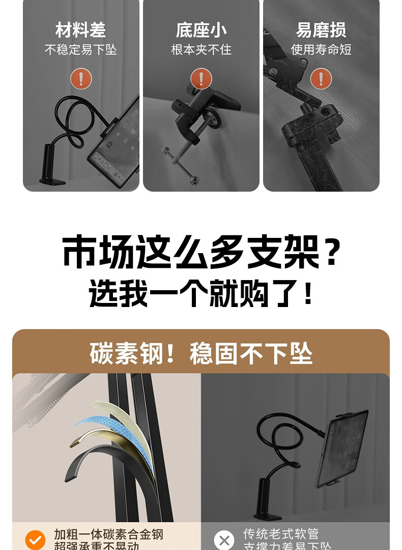 Elafu Handy-Ständer, Nachttisch, iPad-Tablet-Ständer, faul, multifunktional, freitragend, Bett, Desktop-Drama, Video, Online-Klasse, Overhead-Shot, 360-Grad-verstellbar, zusammenklappbar, für Zuhause, universeller Stützrahmen, spezielles Mobiltelefon mit fünf Löchern, universelle Anpassung, fällt nicht herunter