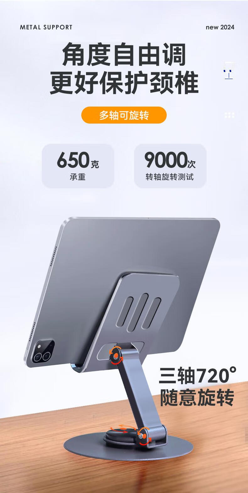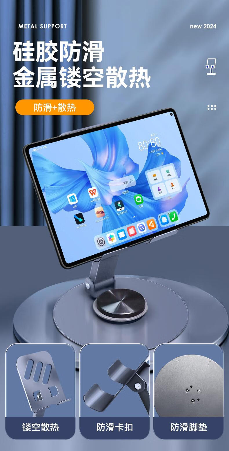 All-metal mobile phone holder suitable for Apple 17 Huawei metal carbon steel Xiaomi TV drama live broadcast cooling tablet phone holder desktop bedside 360-degree rotation and folding universal mobile phone and tablet-Purple