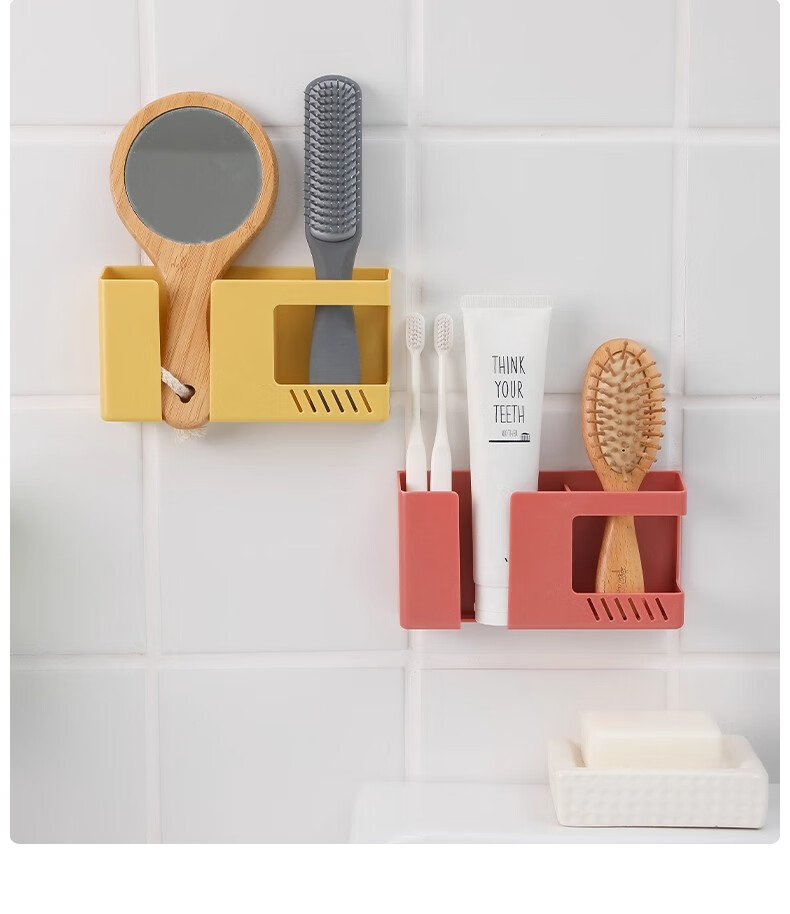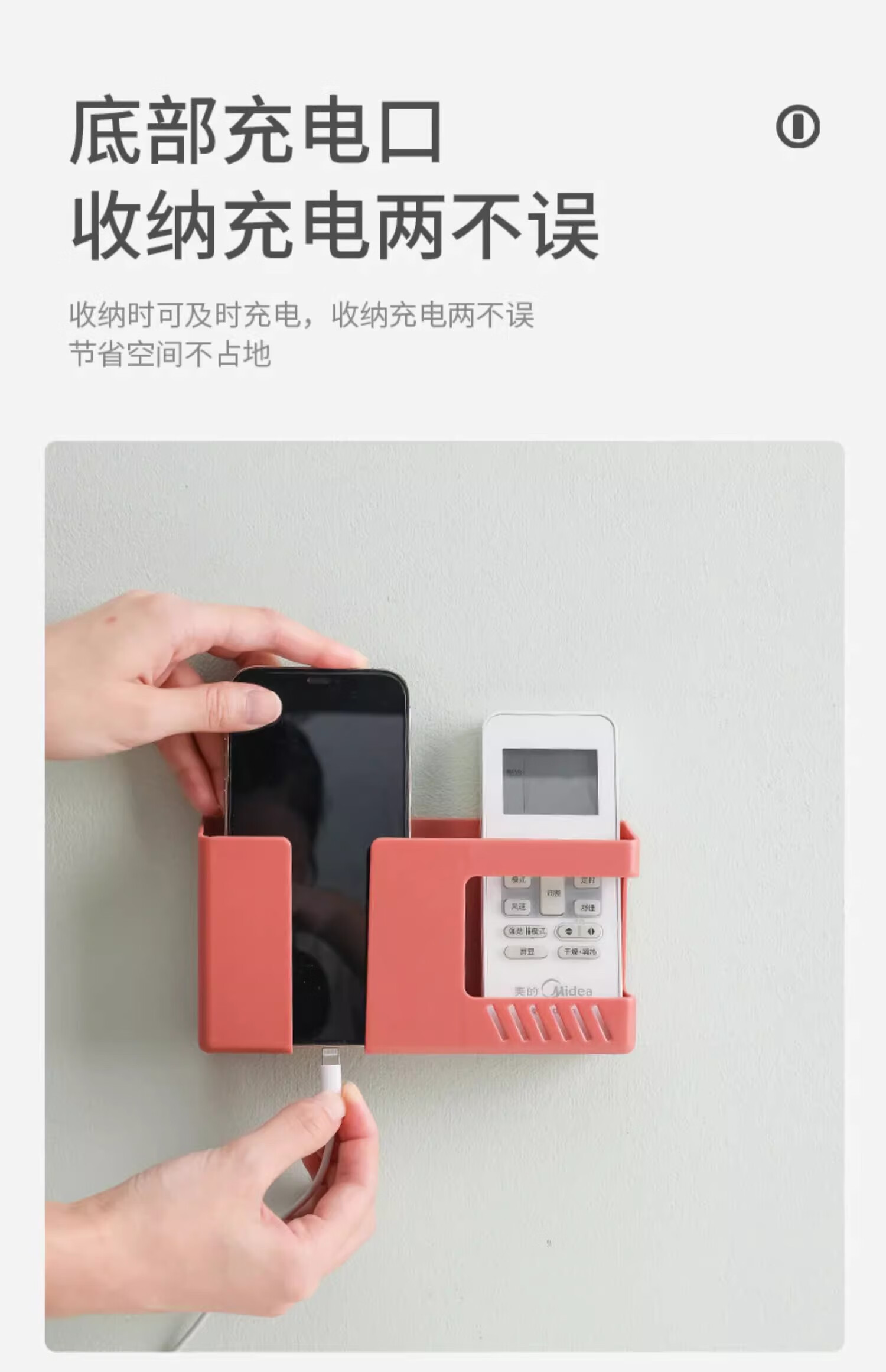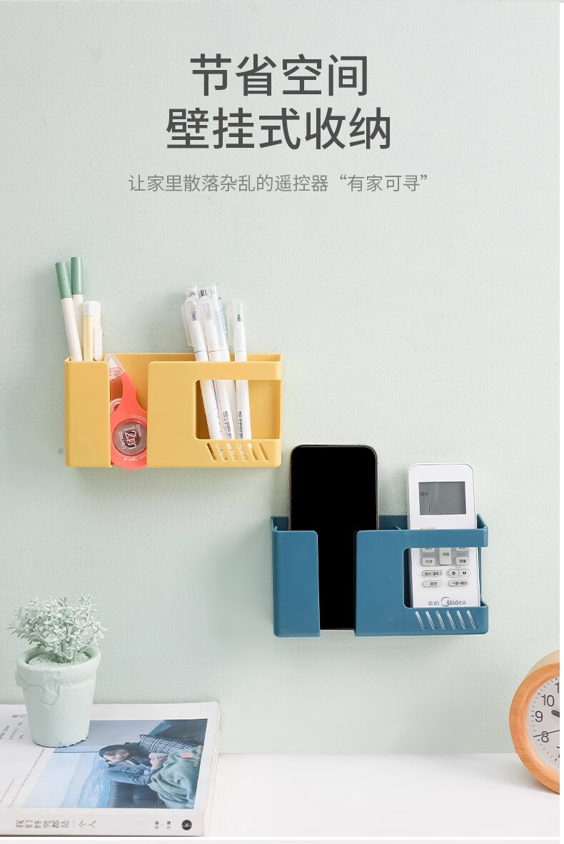 Wandmontierte Aufbewahrungsbox mit zwei Fächern, Nachttisch-Ladehalterung für Mobiltelefone, Heimfernbedienung, TV-Klimaanlage, Fernbedienung, Aufbewahrungsregal, zwei Fächer, Handyhalter-Gelb-1