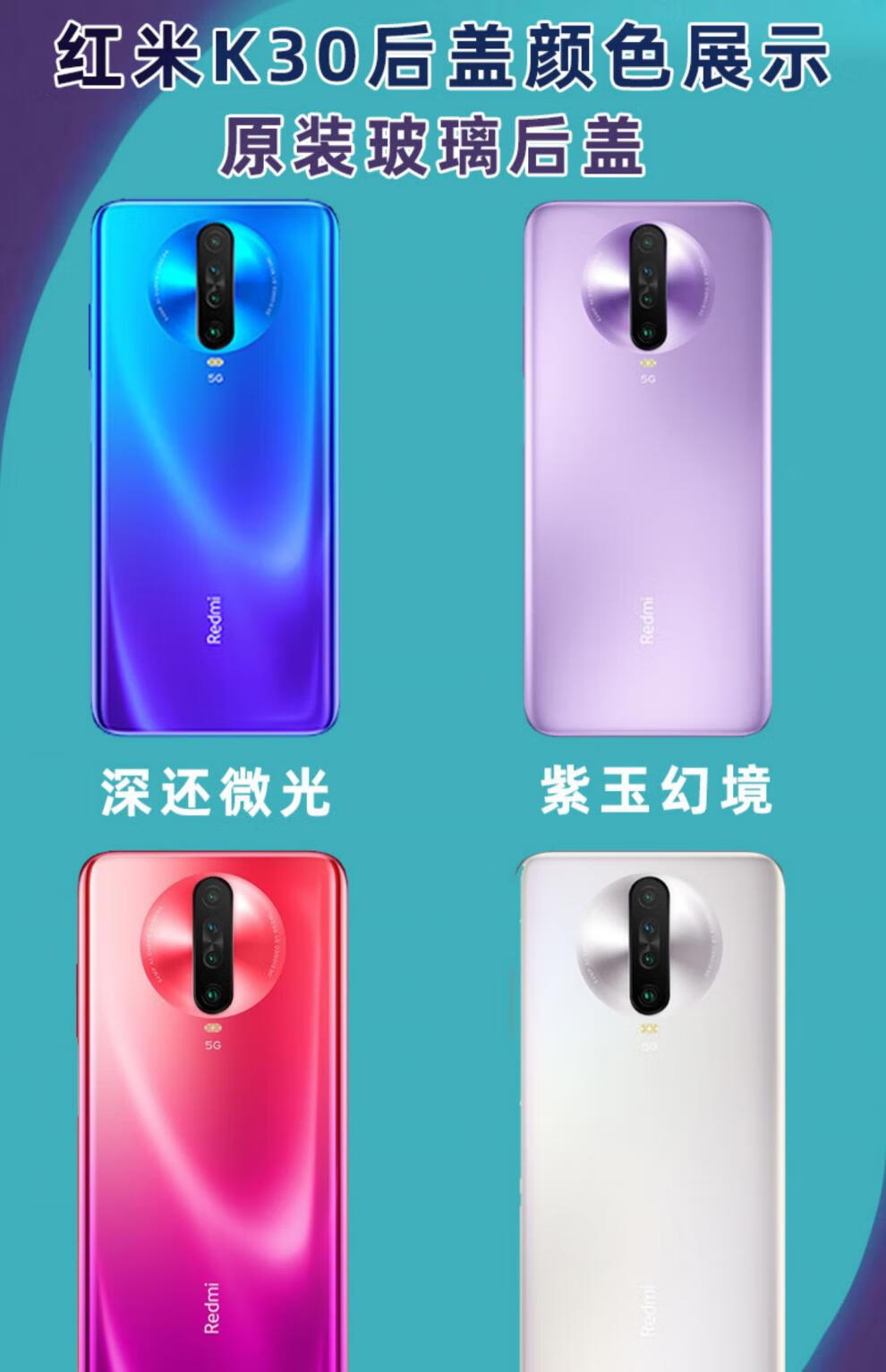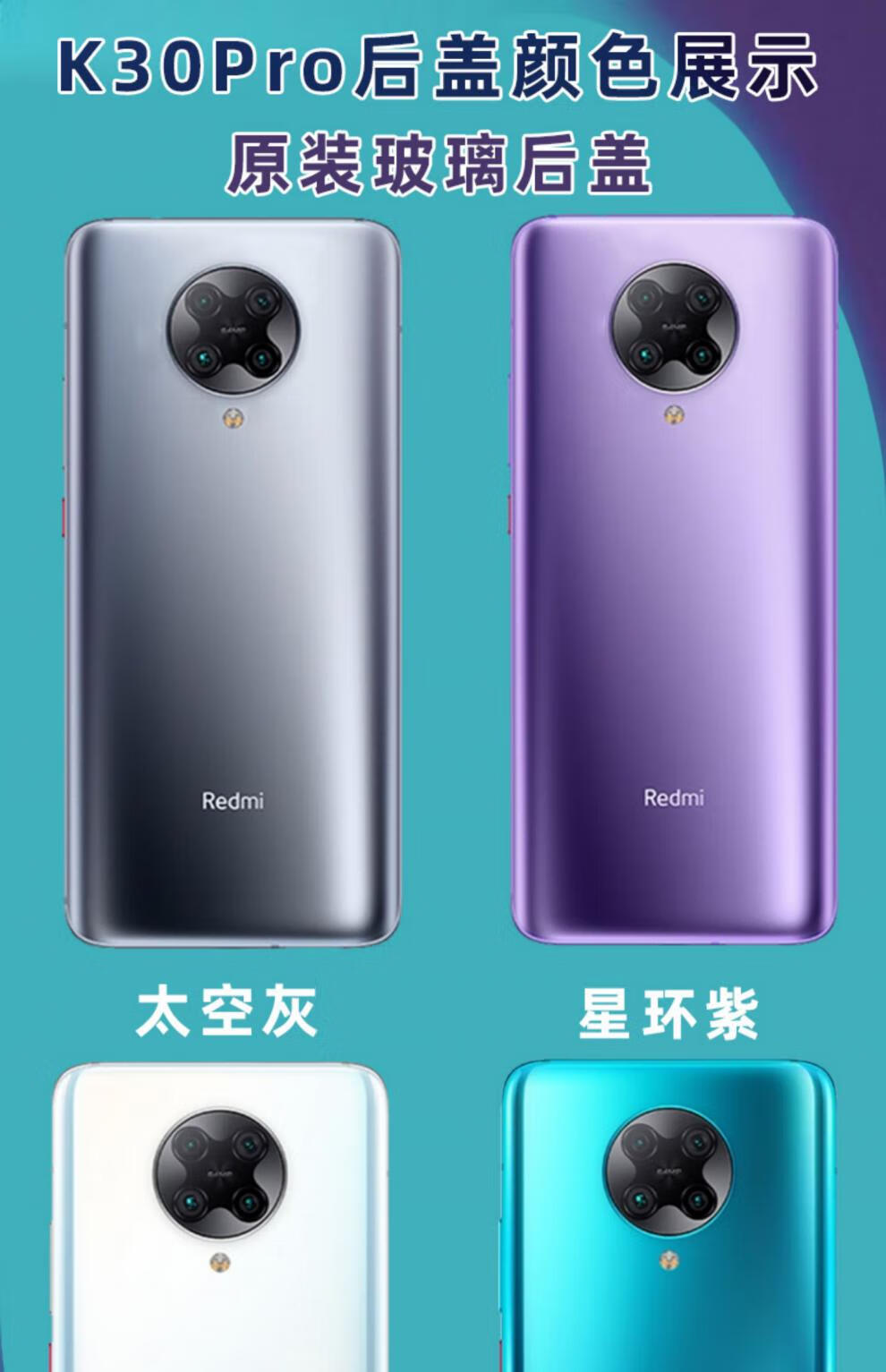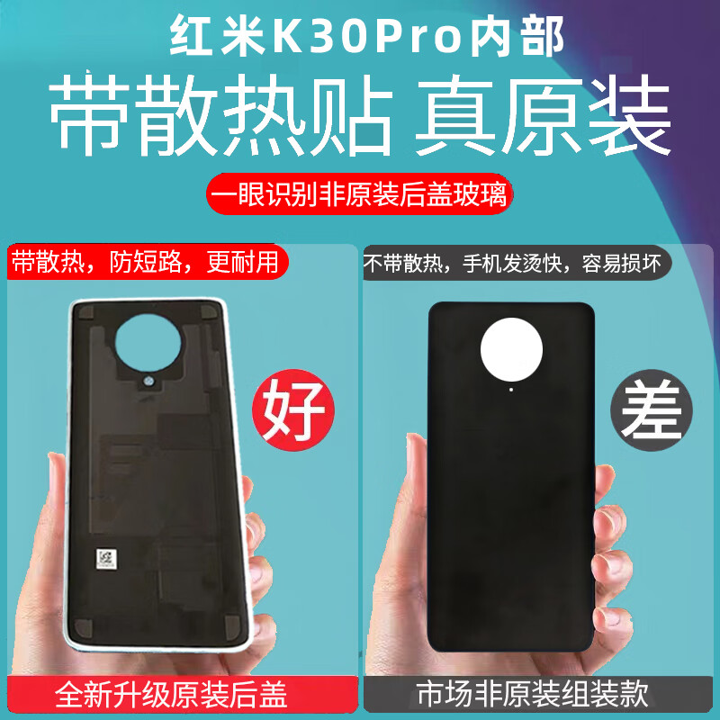 Redmi K30 back cover original glass Redmi K30pro mobile phone back cover K30 battery cover original back cover protective case k30 deep sea shimmer brand new original + cooling cotton + sealant