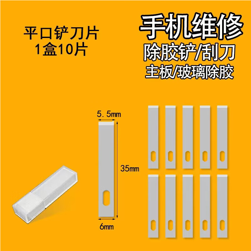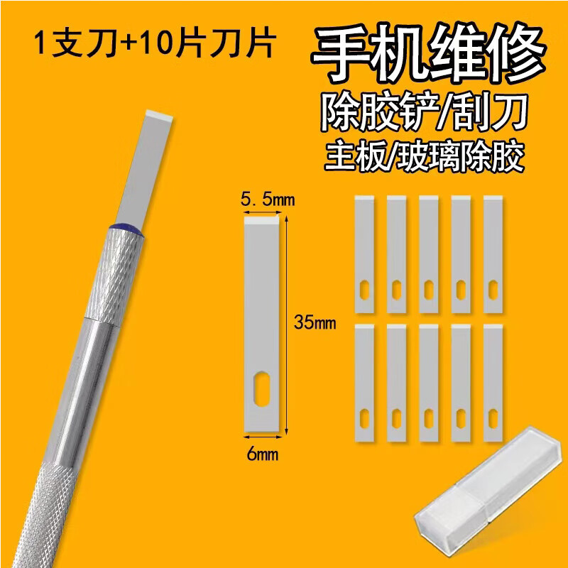 Flat-mouth glue remover, right-angle carving knife, mobile phone repair glue-removal tool, back cover, motherboard glass glue-removal blade, scraper, silver flat-mouth glue remover knife, 1 piece, original with 1 blade
