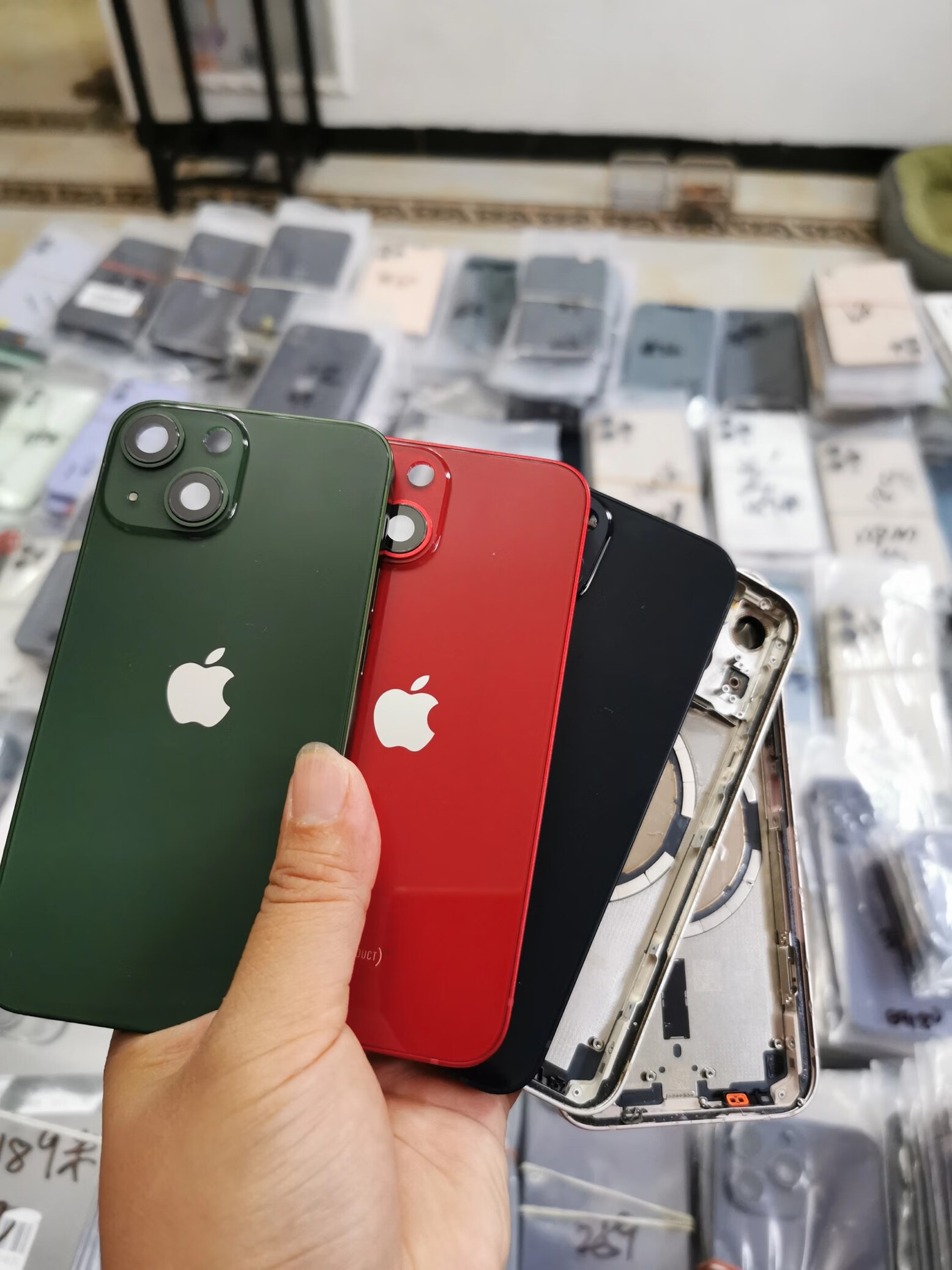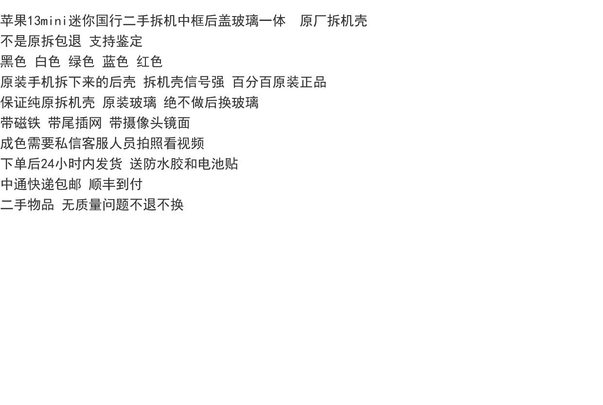 P Apple 13mini original disassembled back shell iphone13mini mini glass middle frame back cover shell green national bank 90% new glass slightly scratched