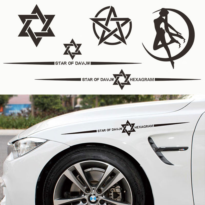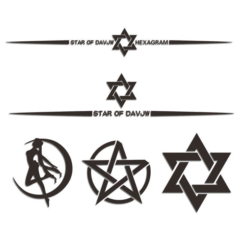 Litian six-pointed star car stickers car modification front and rear windshield personalized decoration creative body pull-up fuel tank cover stickers six-pointed star A style black 65cm