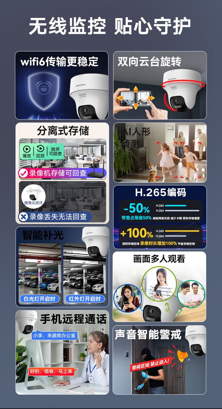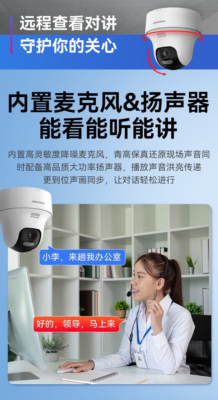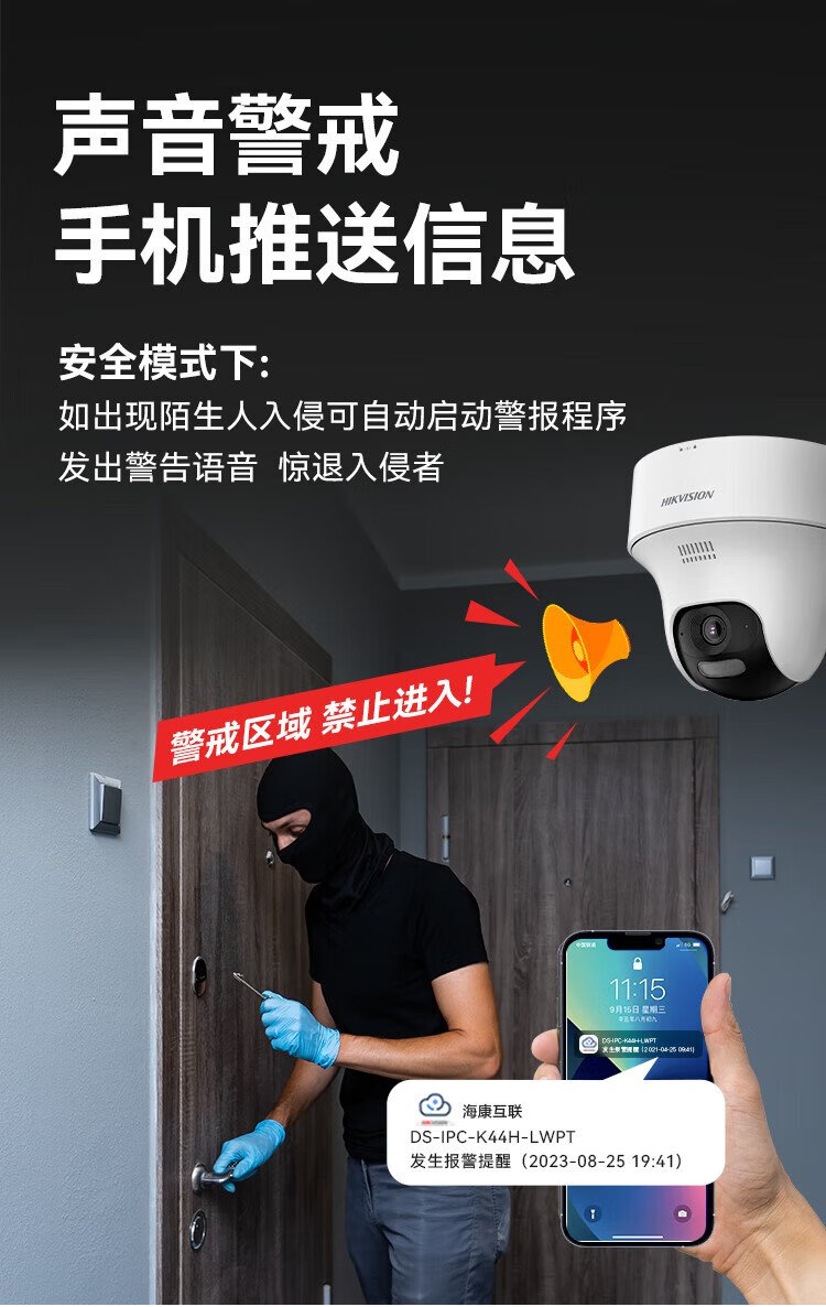 HIKVISION Hikvision wireless wifi monitor camera home 360-degree panoramic 4 million ultra-clear PTZ rotating mobile phone remote indoor intercom AI humanoid detection K44H