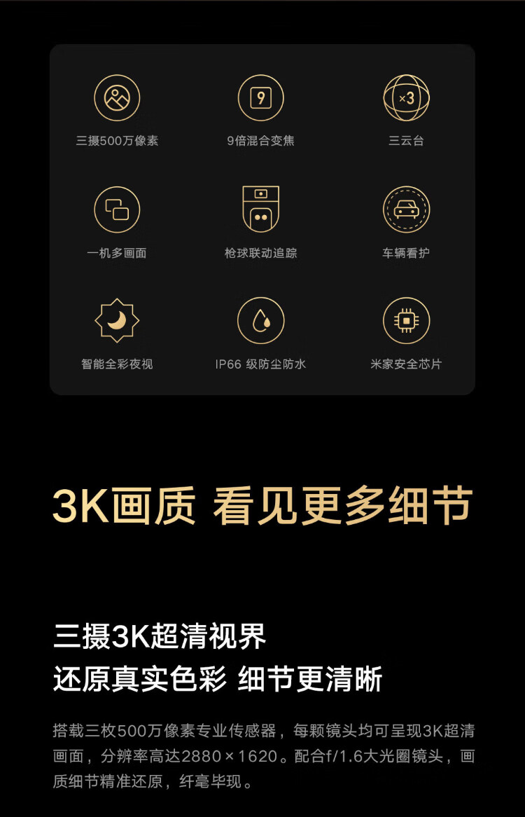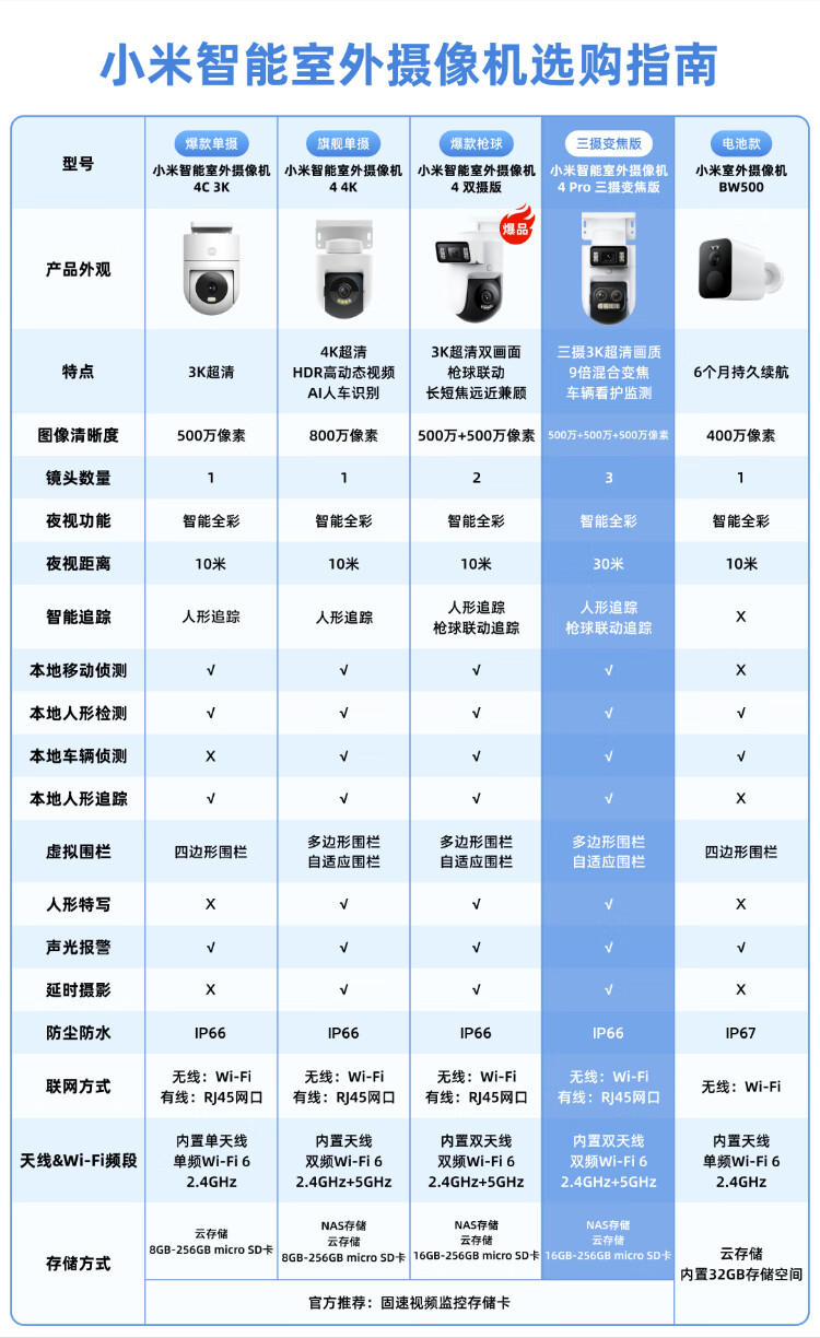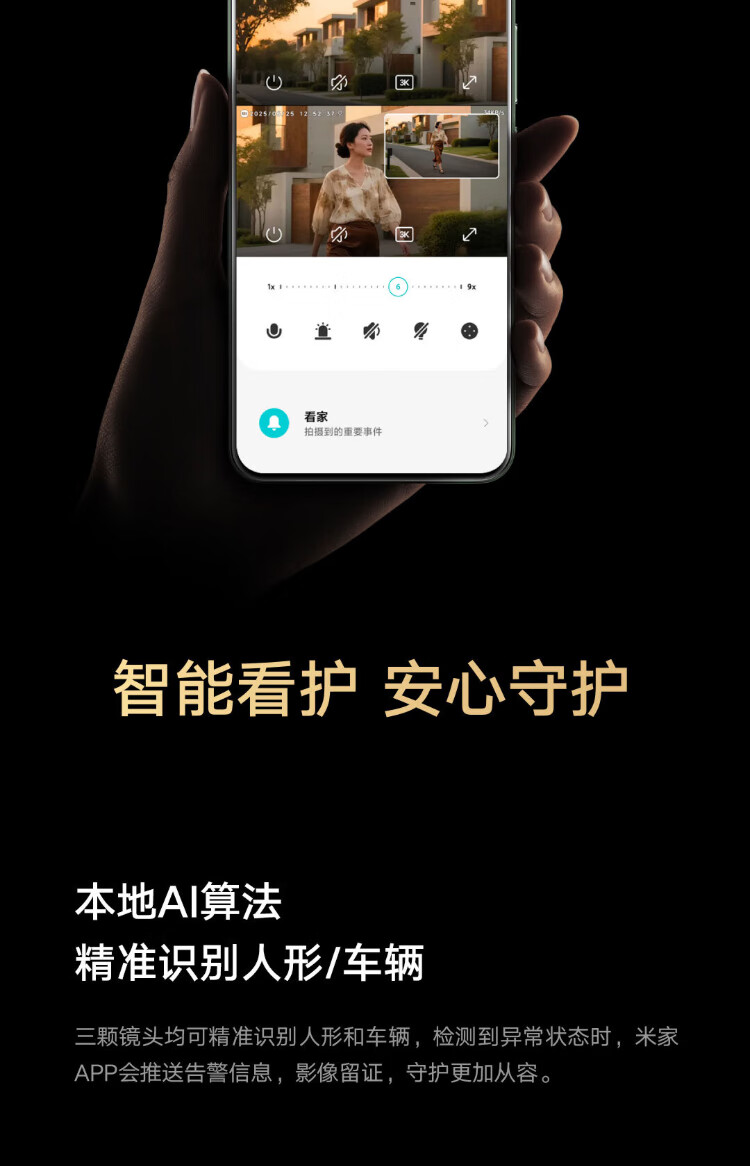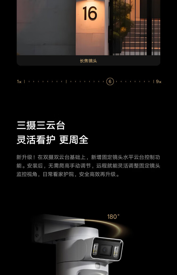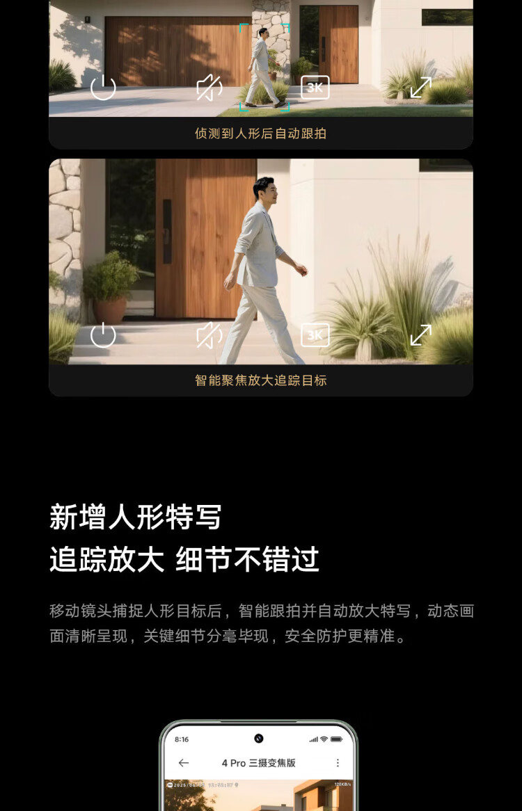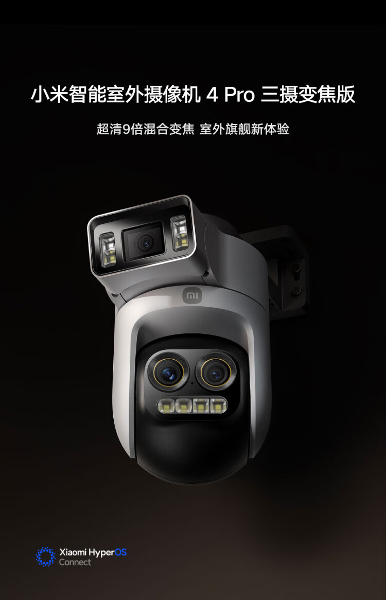 Xiaomi Smart Outdoor Camera 4 Pro triple camera zoom version surveillance camera home monitor 360 degrees no blind spots with night vision triple camera 5 million pixels 3K ultra-clear
