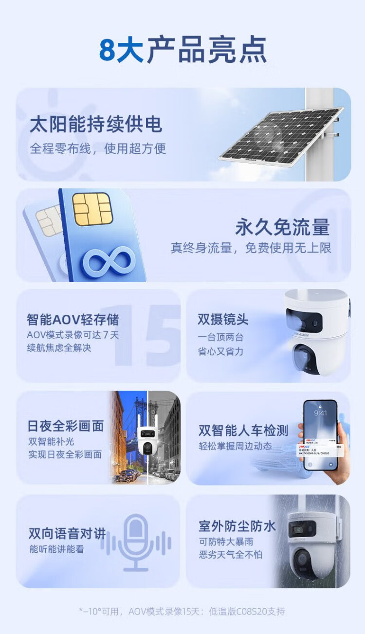 HIKVISION Hikvision Solar Camera No Plug-in 8 Million Dual Camera Home Outdoor 4G Lifetime Free Traffic 360 Degrees No Dead Angle AOV Outdoor Monitor Mobile Phone Remote T4