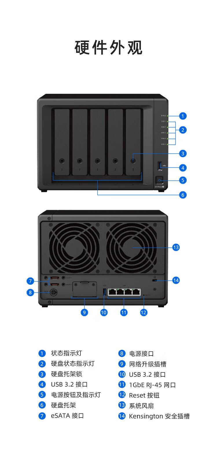 群晖(Synology)DS1522+ 双核心 五盘位 NAS网络存储服务器 文件存储共享 数据备份 私有云 (标配无硬盘 )