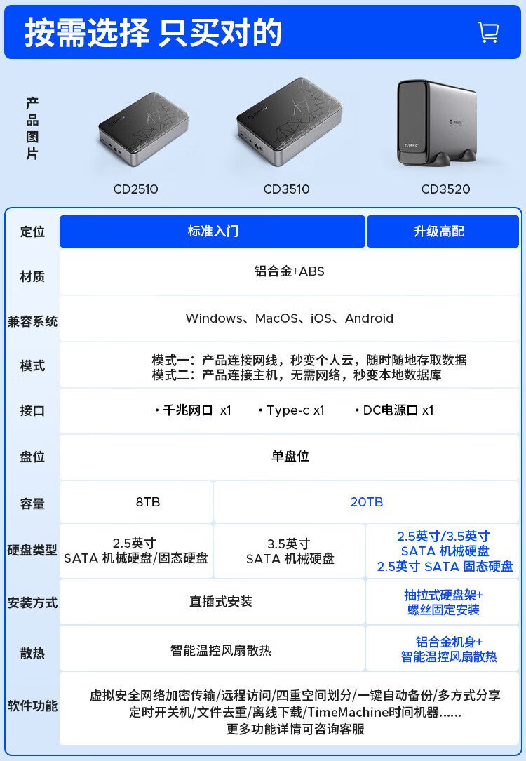 ORICO privater persönlicher Cloud-NAS-Netzwerkspeicherserver, mobile Festplattenbox, Heimnetzwerk-Festplatte, Cloud-Festplatte, leere Einstiegsfestplatte, unterstützt Black Myth Wukong mit CD3520