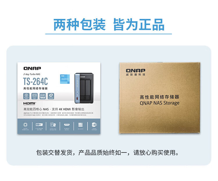 威联通(QNAP) 威联通TS-264C 8G内存两盘位四核心处理器私有云网络存储服务器NAS家庭云 TS-264C+4T酷狼*2