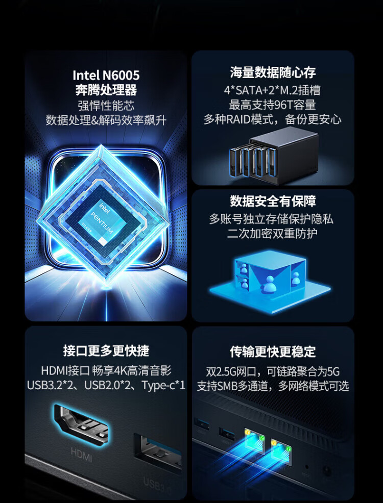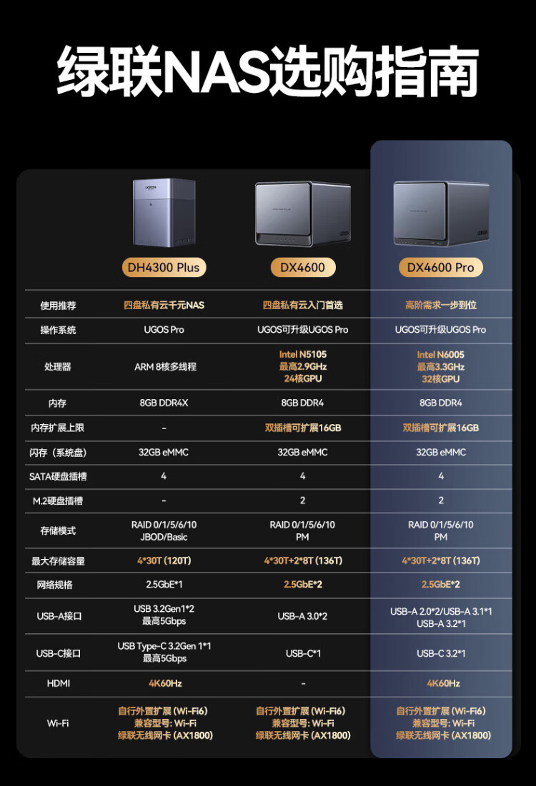 UGREEN DX4600 Pro nas private cloud home network cloud storage server four bays 2.5G network port hard drive mobile phone tablet expansion smart AI photo album DX4600 Pro with Seagate Coolwolf 4T*2 genuine equipment warranty two years hard drive three years
