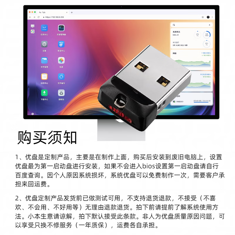 Feiniu NAS system installation disk network storage personal private cloud waste computer into cloud storage Feiniu nas system 8g USB flash drive