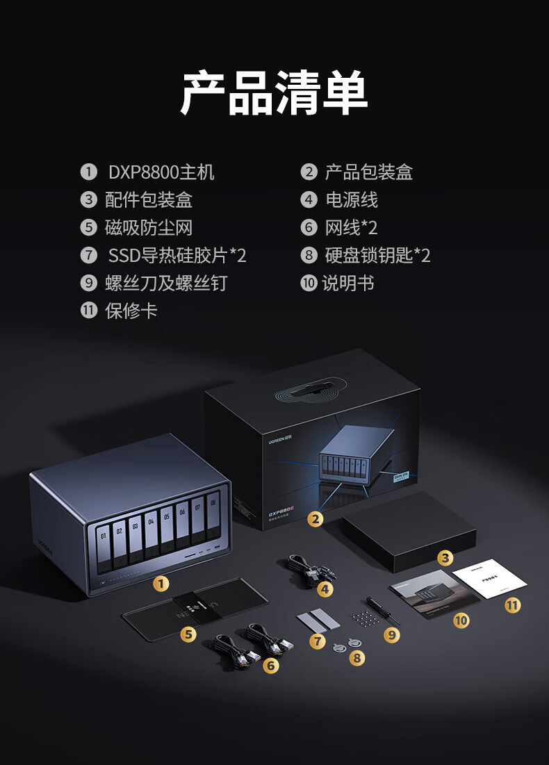绿联私有云DXP8800 八盘位NAS网络存储个人家庭云硬盘服务器 双万兆网口 AI相册 团队办公权限分级管理 搭配希捷酷狼硬盘16T*8块 【正品国行质保】