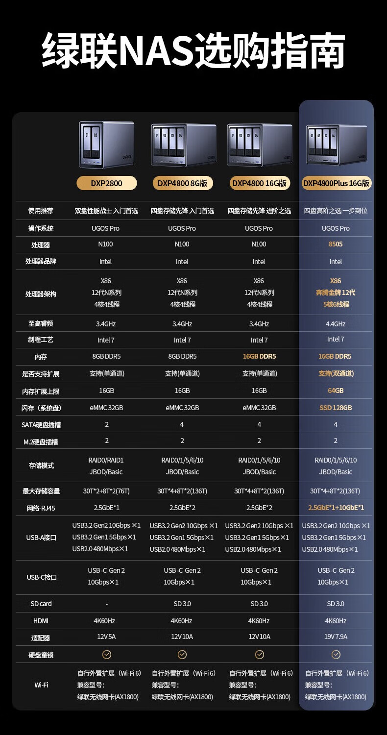 绿联私有云DXP4800 Plus 16G内存四盘位NAS网络存储 个人家庭云硬盘服务器 万兆网口 企业数据共享备份 搭配希捷酷狼硬盘4T*2块 【正品国行质保】