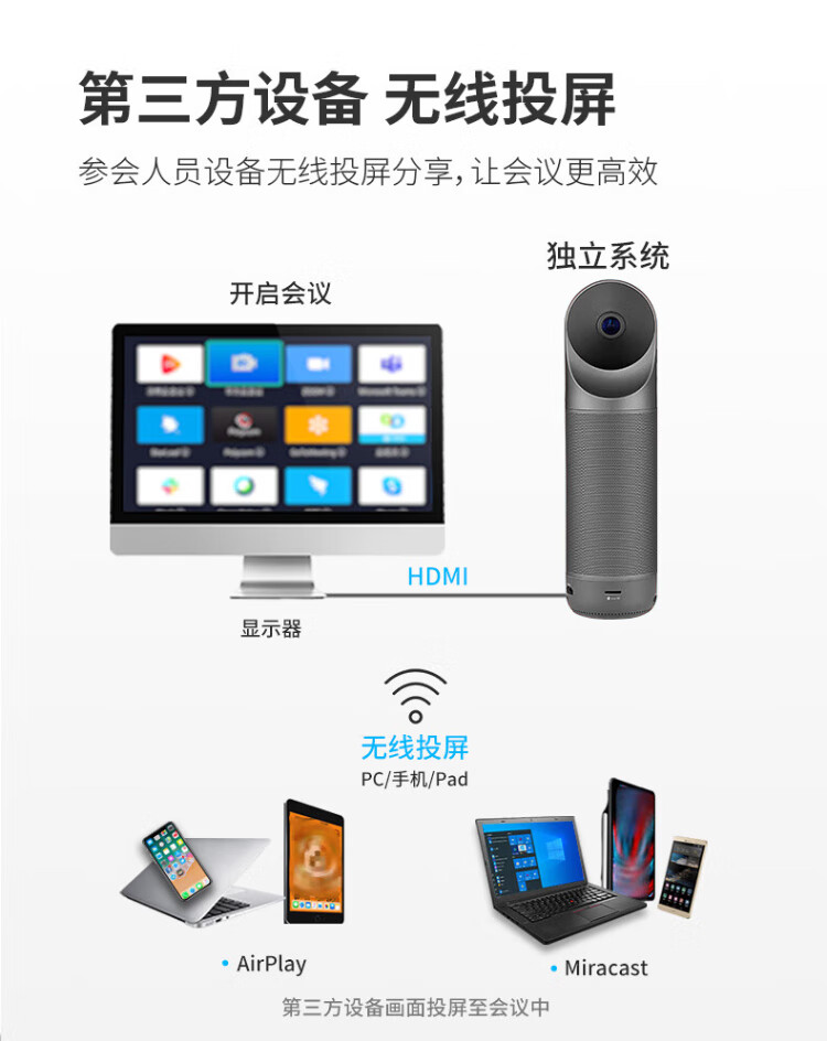 KanDao sees 360 panoramic high-definition video conferencing camera, wireless screen projection, sound amplification and sound pickup, all-in-one conference machine, omnidirectional microphone, conference solution, Meeting Pro