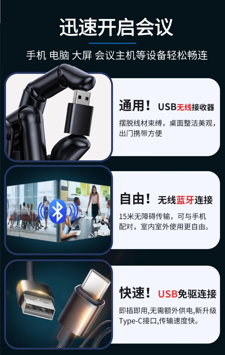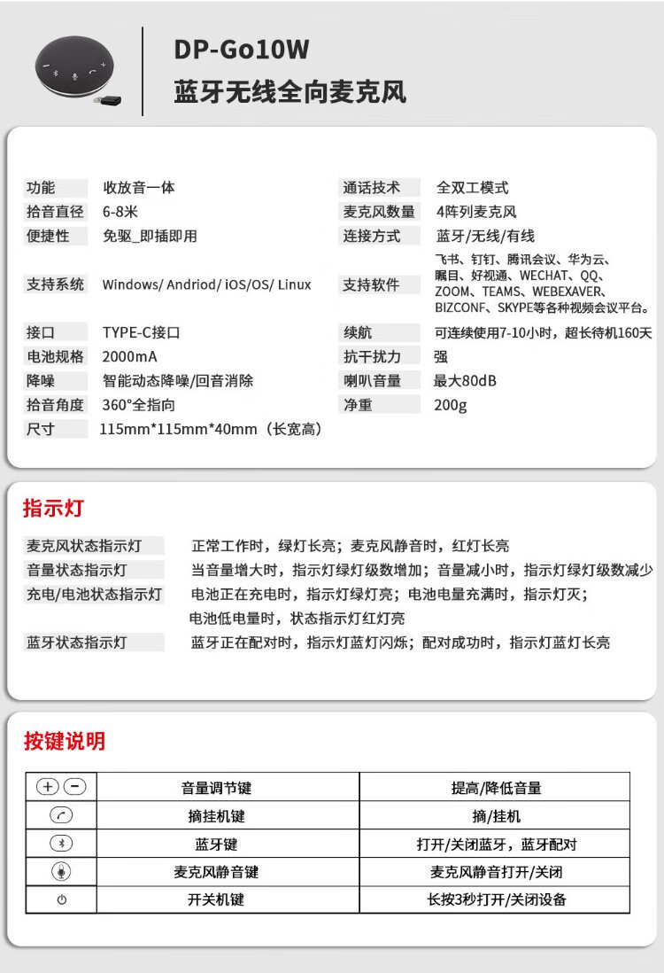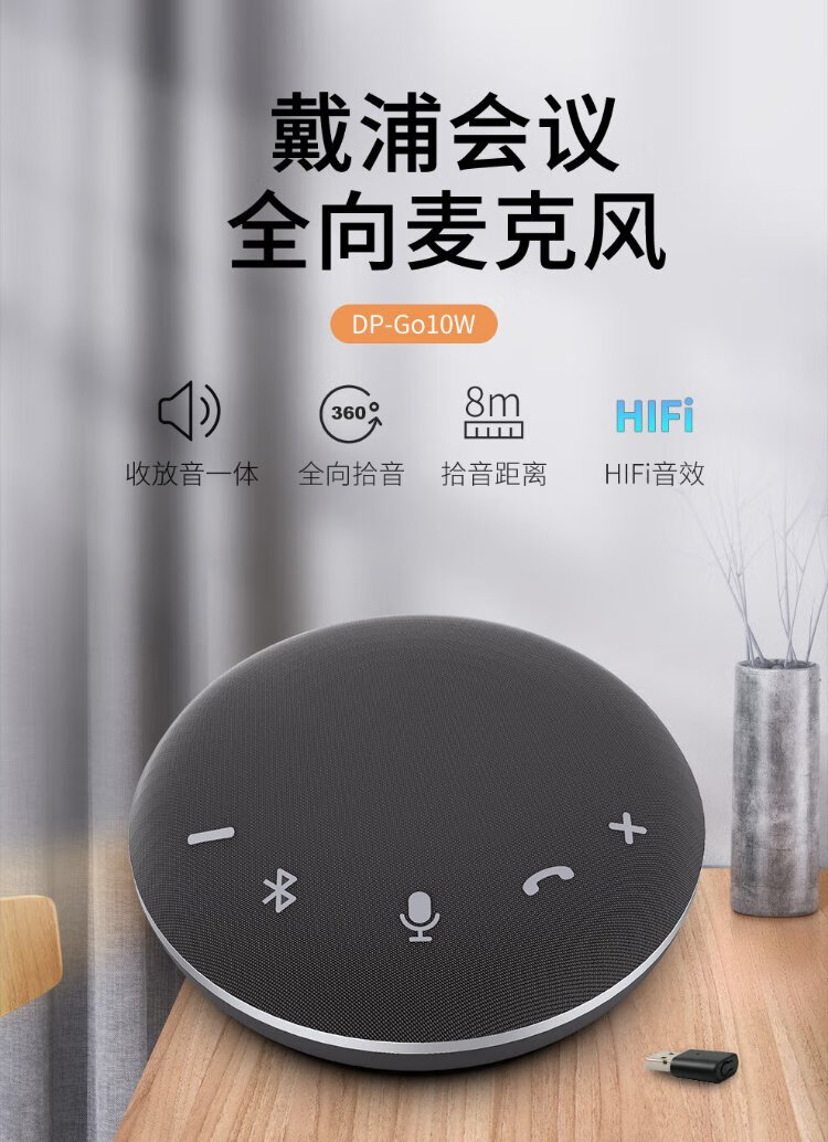 DAIPU video conferencing omnidirectional microphone USB wireless Bluetooth cascading desktop conference room speaker intelligent noise reduction driver-free 8-meter diameter pickup compatible with Tencent DingTalk Go10W