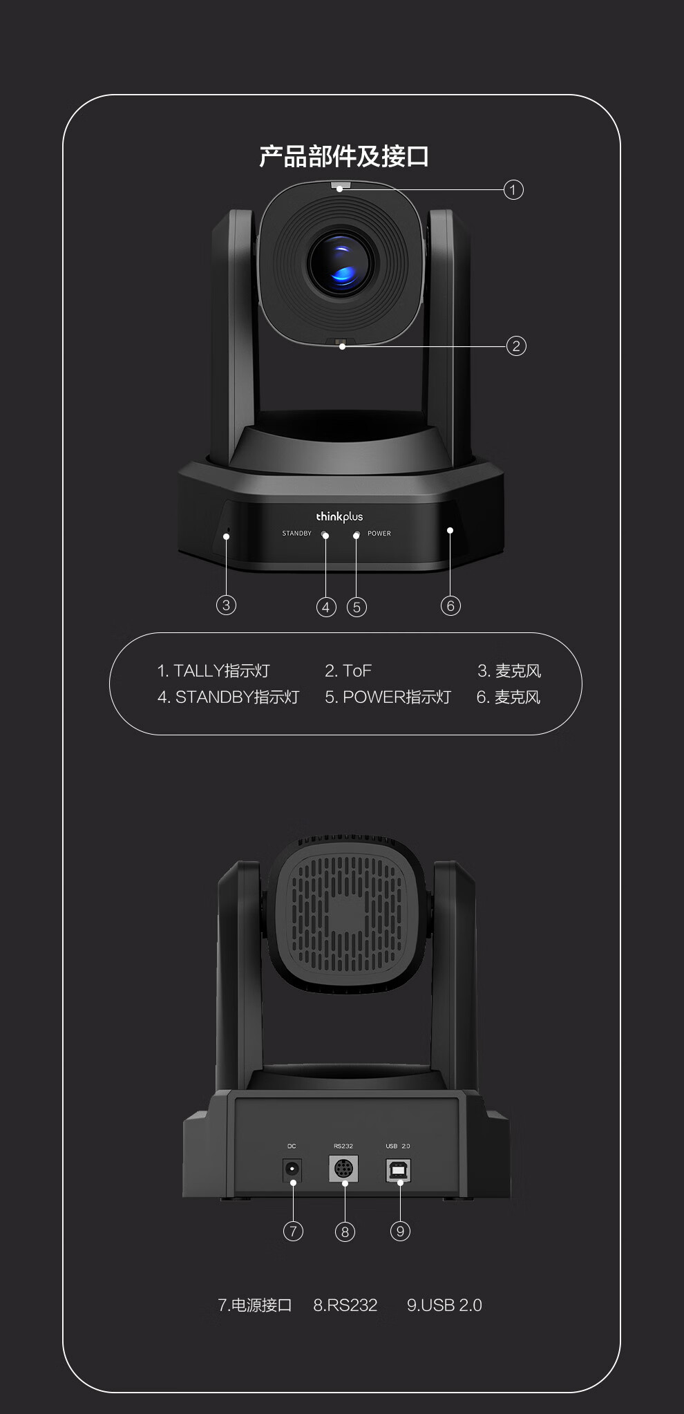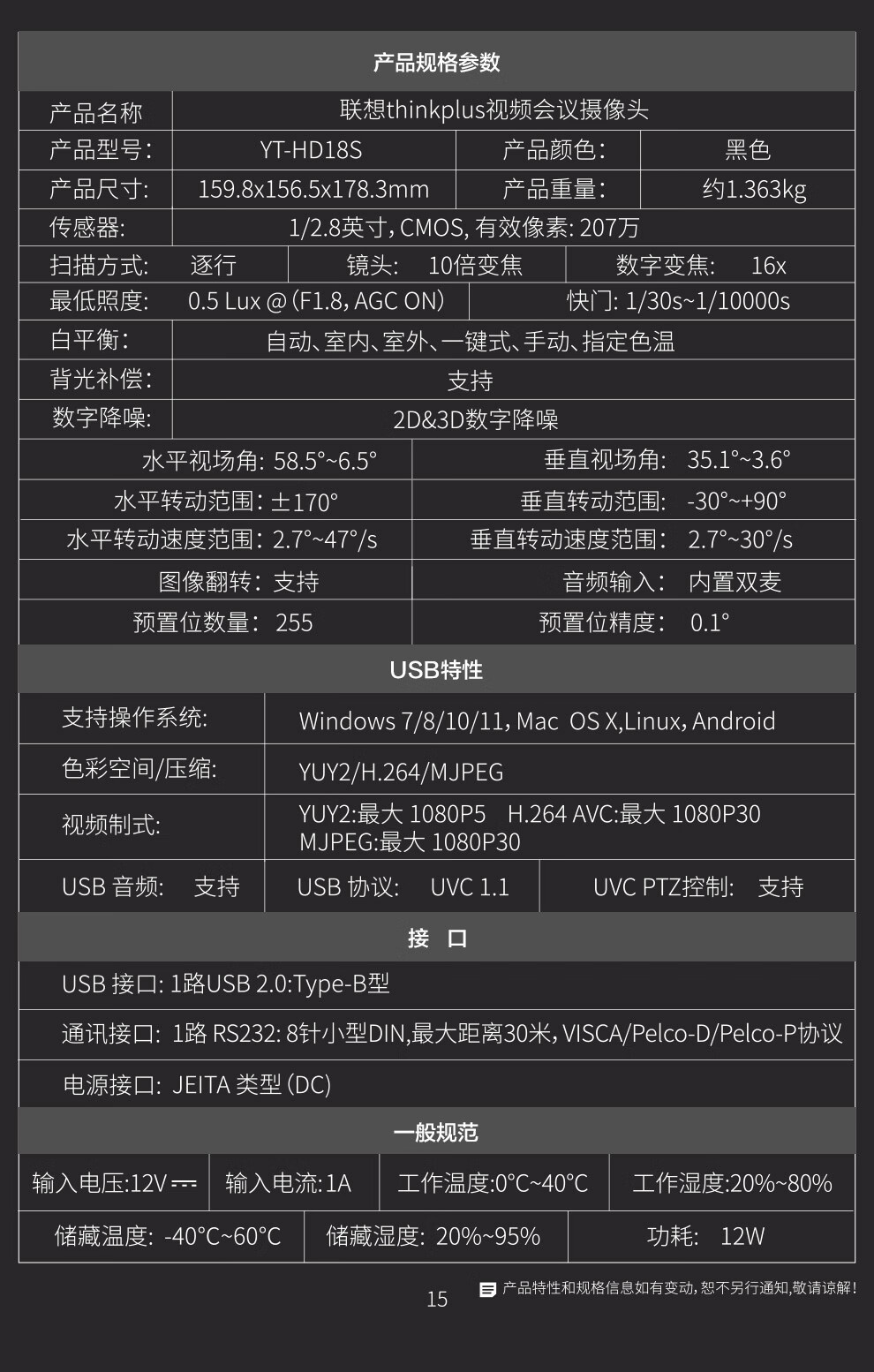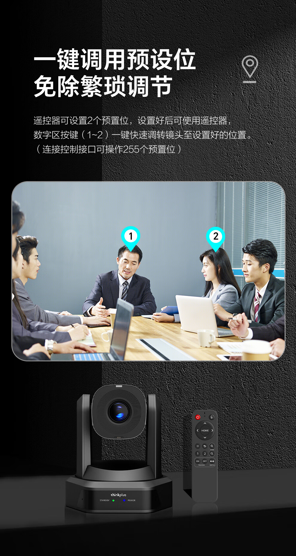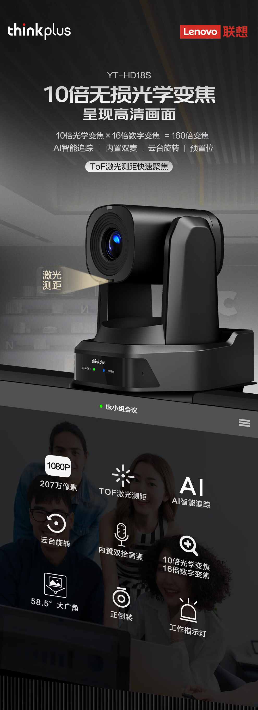 Lenovo thinkplus video conferencing camera and microphone integrated PTZ camera 1080P HD 10x optical zoom AI tracking autofocus YT-HD18S