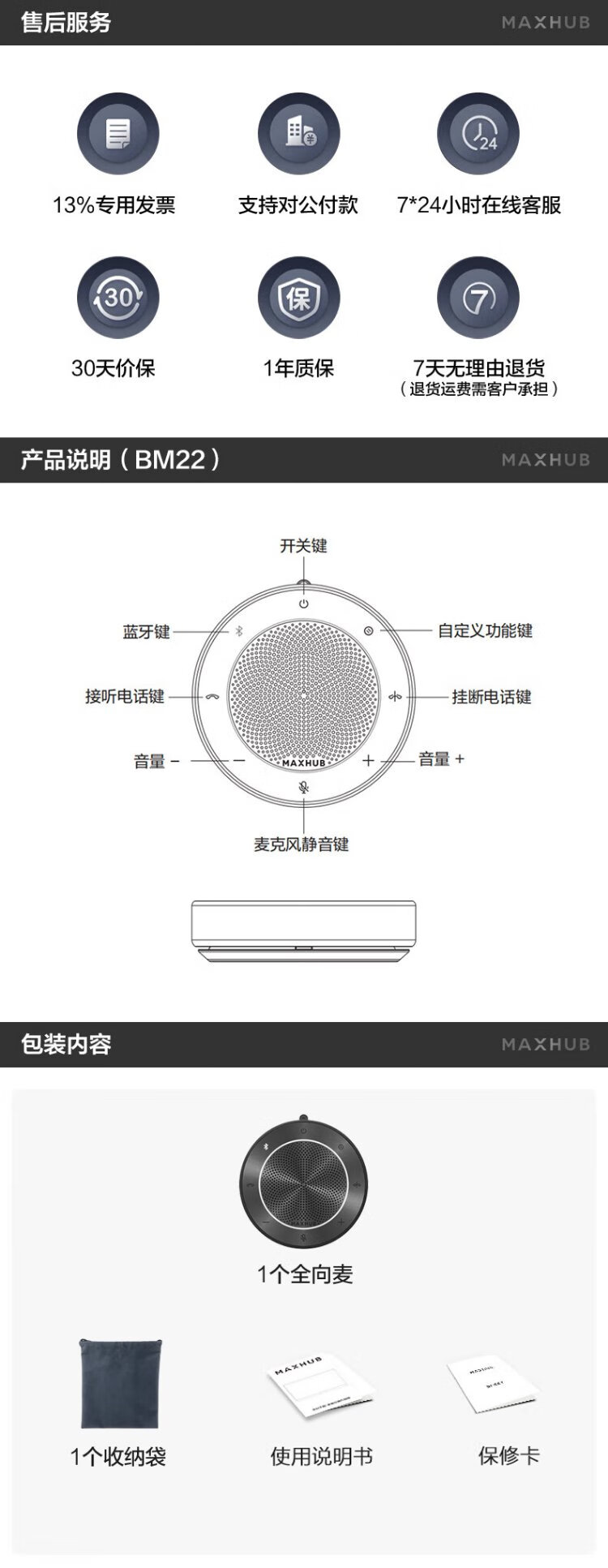 MAXHUB video conferencing omnidirectional microphone/360 5-meter pickup Bluetooth wireless connection desktop speaker speaker/20-40 conference room solution BM22