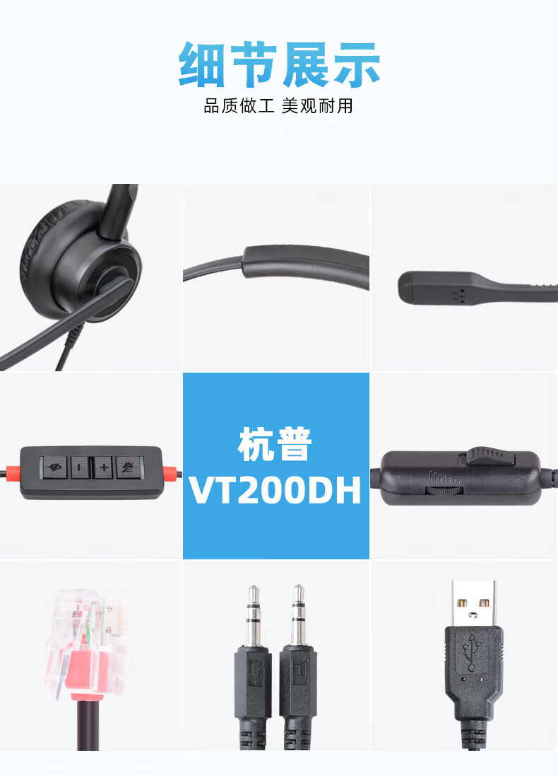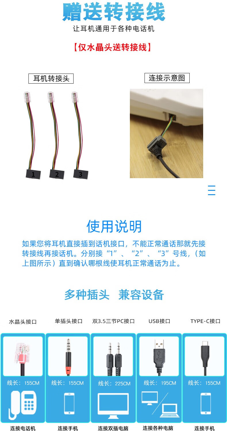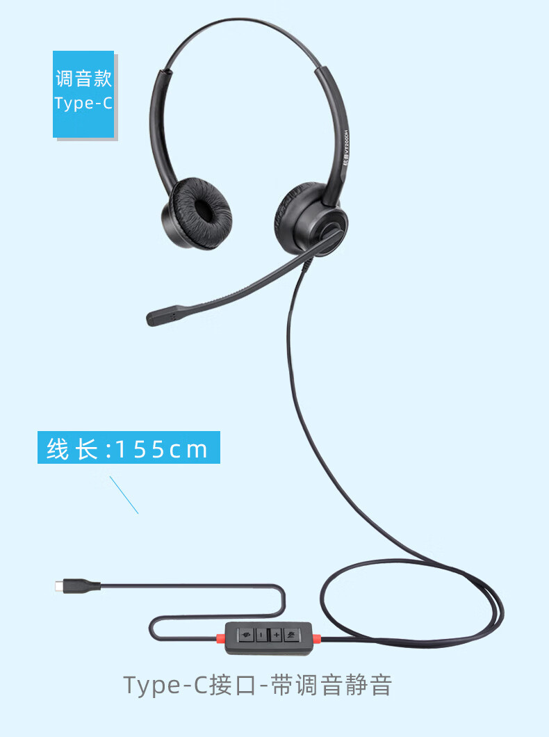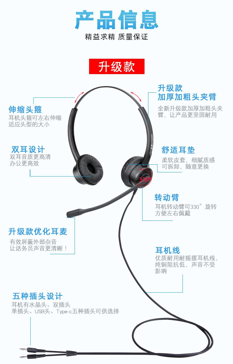 Hangpu VT200DH telephone headset customer service headset call center operator dedicated to mobile phone computer landline conference office anti-noise reduction head-mounted wired telephone headset upgraded model-Type-C-with tuning mute