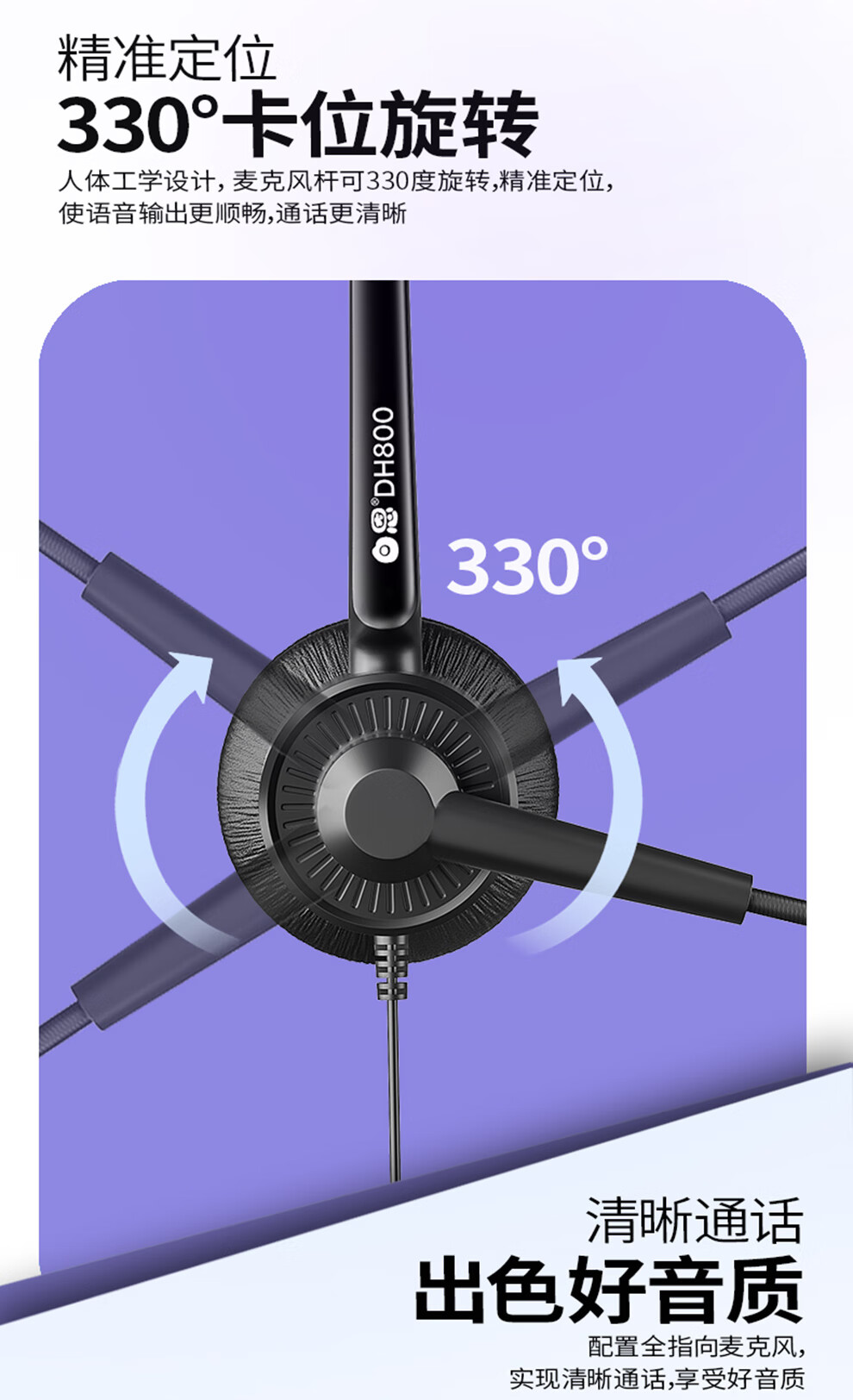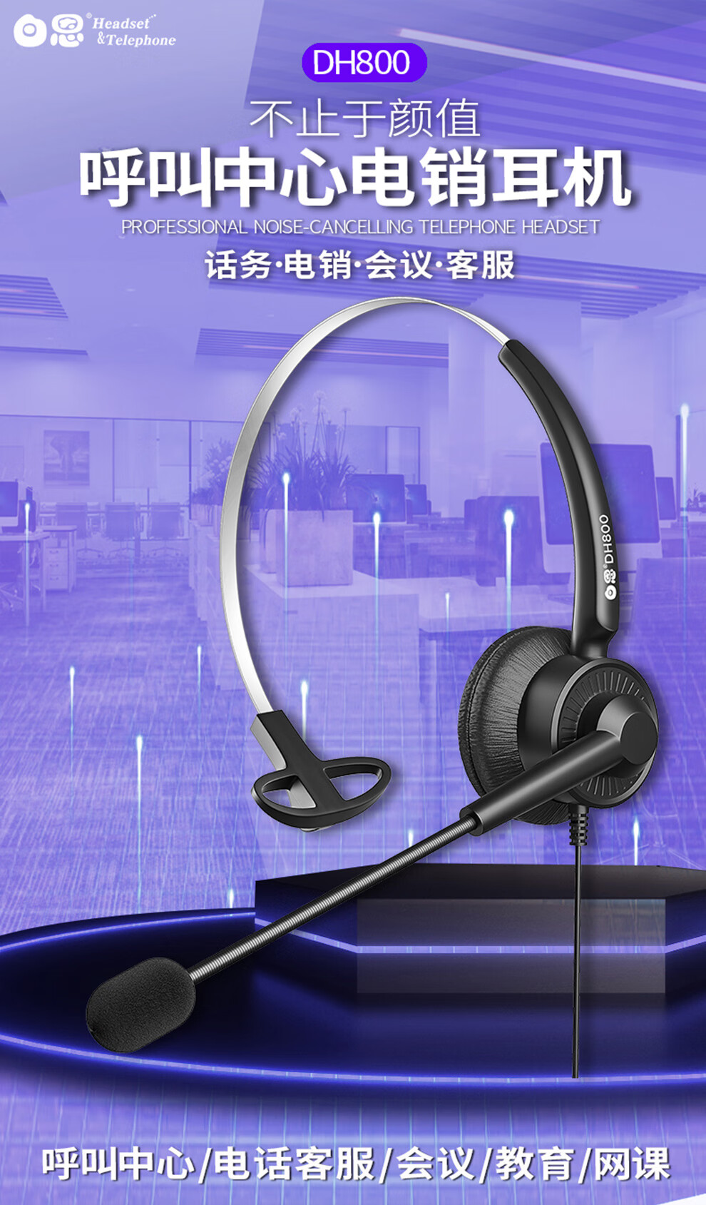 Bai En DH800 call center computer mobile phone headset headset operator telemarketing outbound call headset customer service wired single ear affordable part-time online course education and training single ear PC 3.5mm dual plug tuning mute plug dual port computer