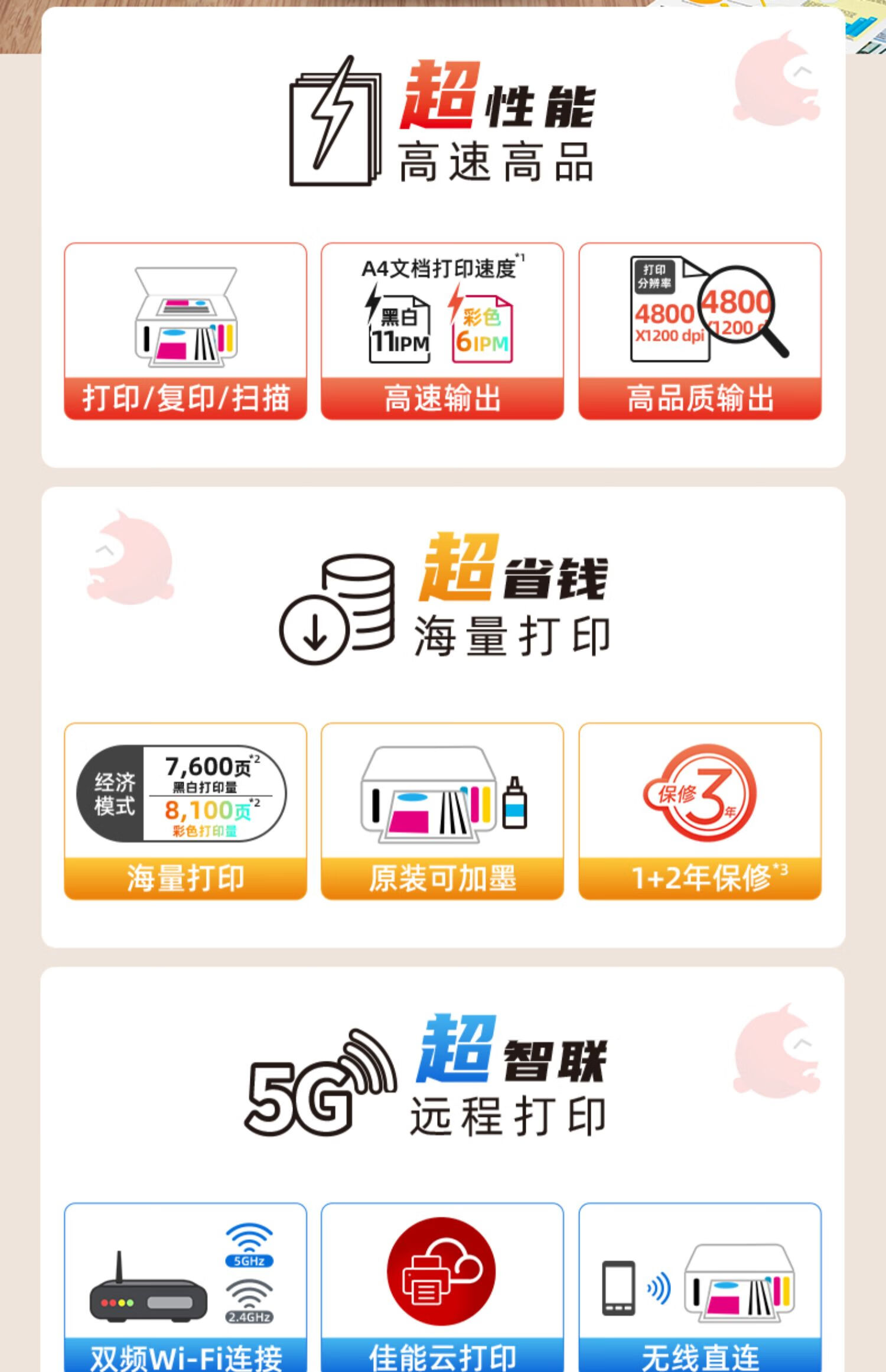 G3871/G3870/G3872 color inkjet continuous supply 5G wireless printing, copying and scanning all-in-one machine G2830 original continuous supply+print+copy+scan/new model+(white package four