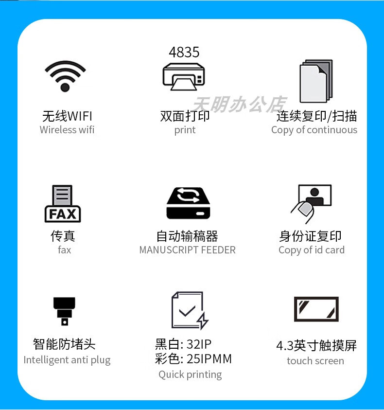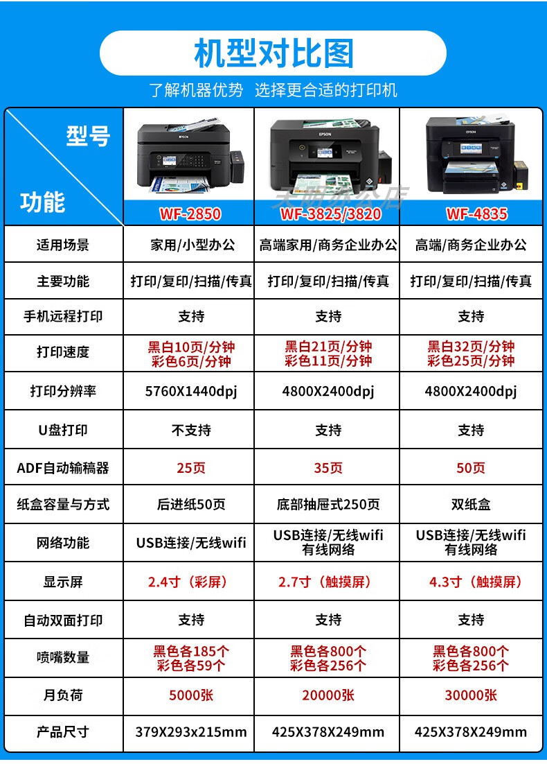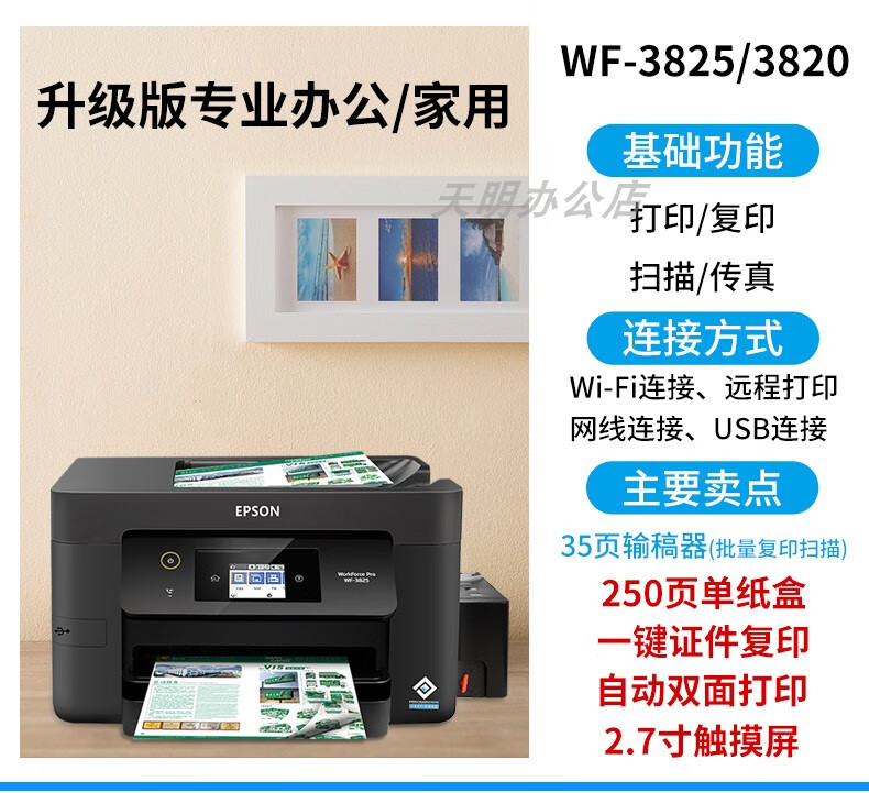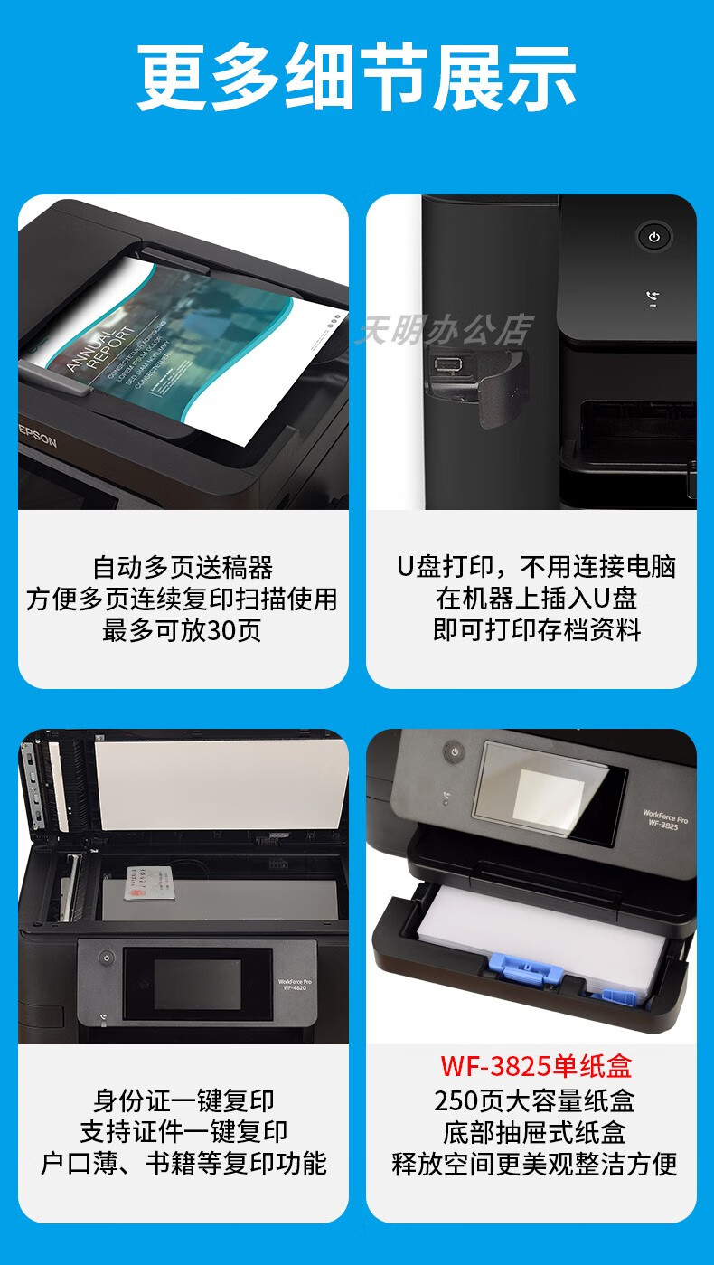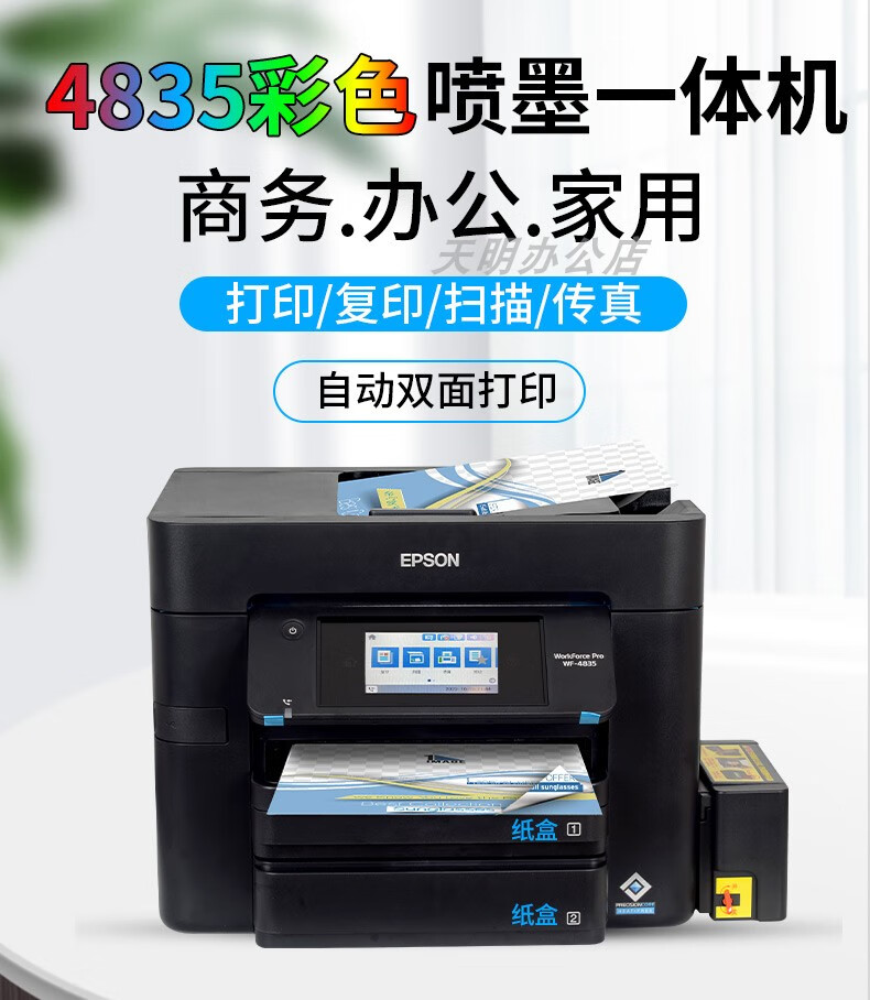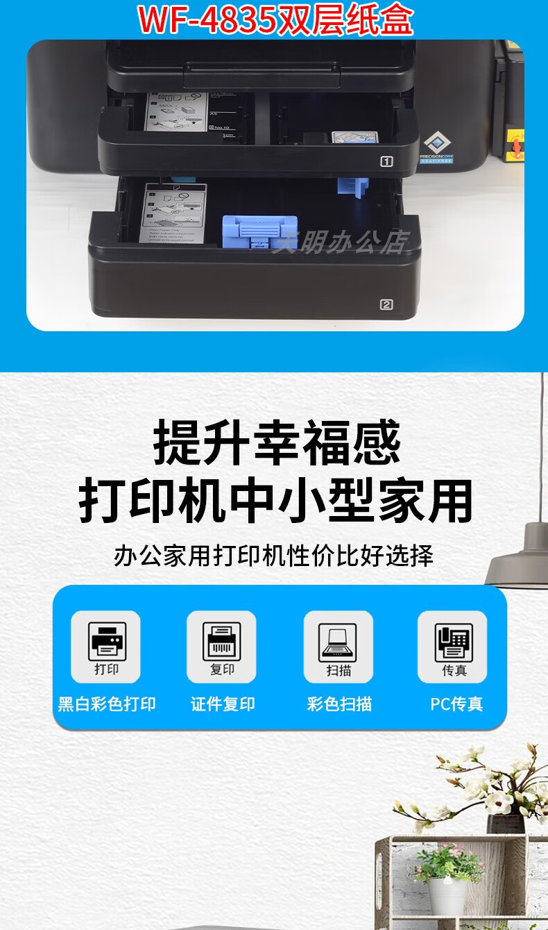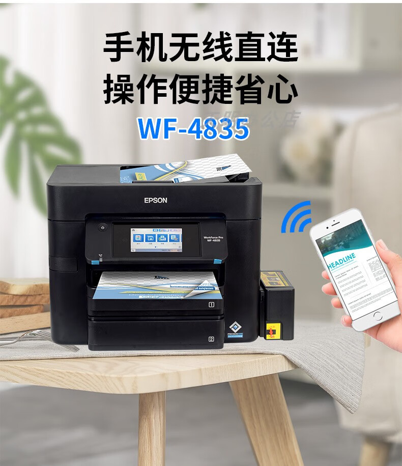 3825 photo color inkjet printer WIFI wireless mobile phone all-in-one home 4835 copier WF-4835 enterprise business version 250 pages double-layer paper box package two 400ML continuous supply + 1 set of ink