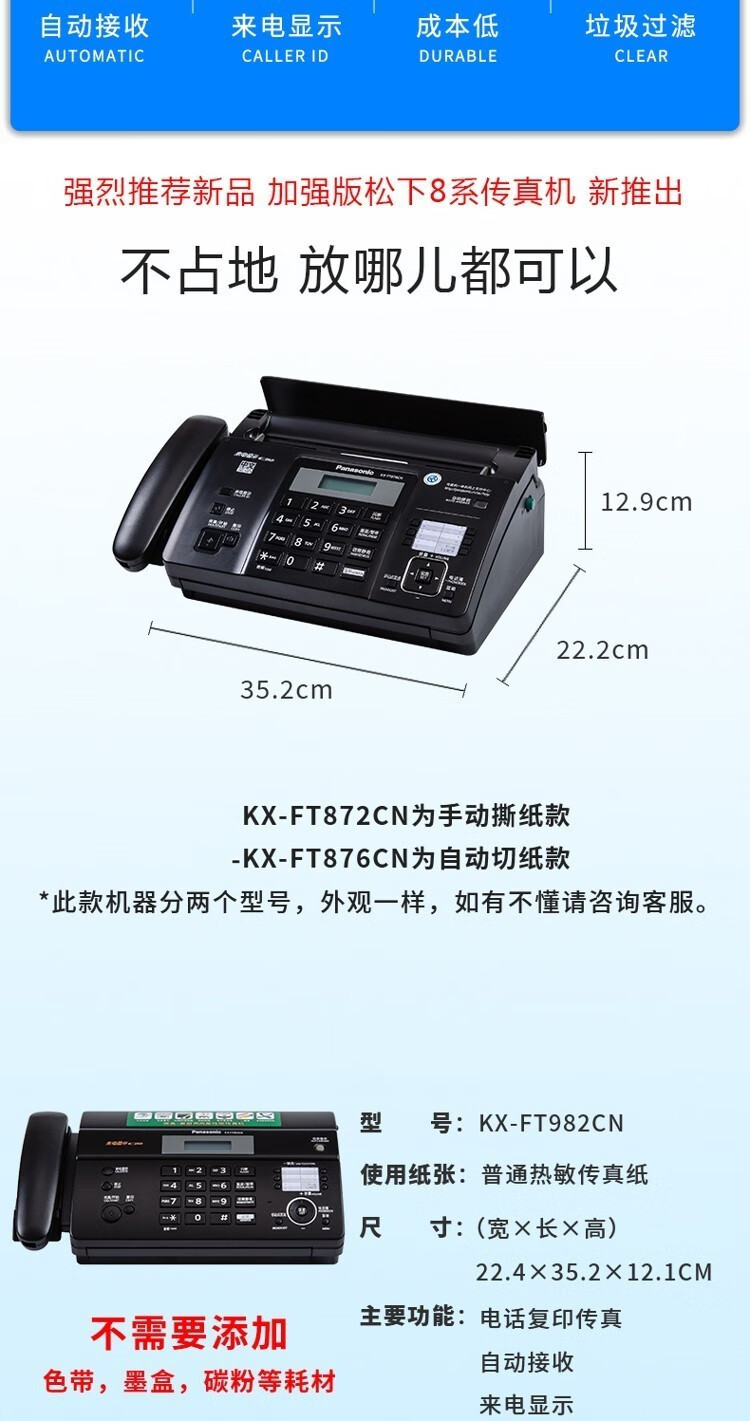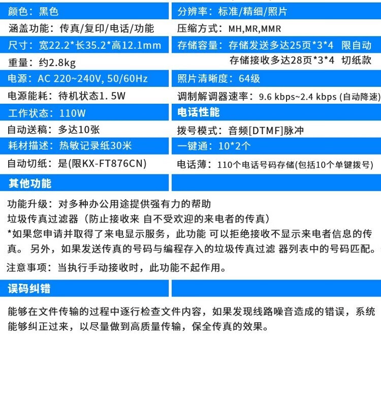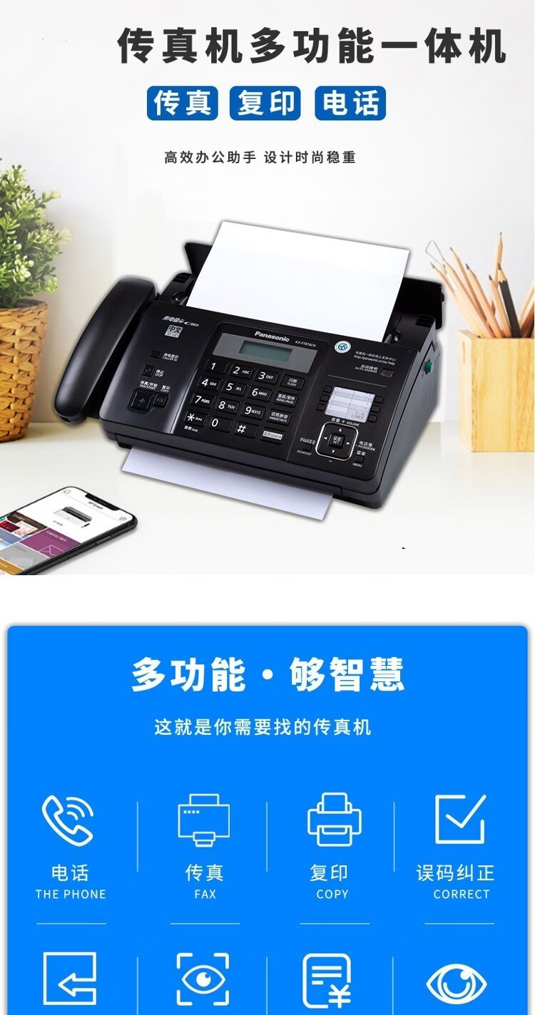 Fax machine and telephone all-in-one machine 876 thermal paper fax machine telephone copy multi-function all-in-one automatic receiving night black (Chinese) enhanced version automatic paper cutting model