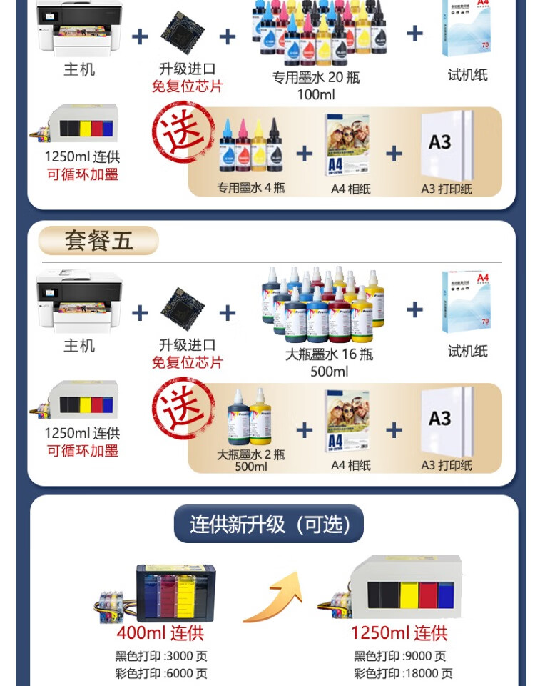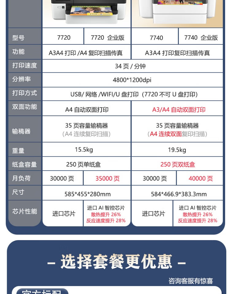 7740 color A3 printing and copying all-in-one inkjet scanning home double-sided continuous supply for commercial office 7720 7720 enterprise version single paper box A3/A4 printing A4 copy and scan package three can add ink merchant office