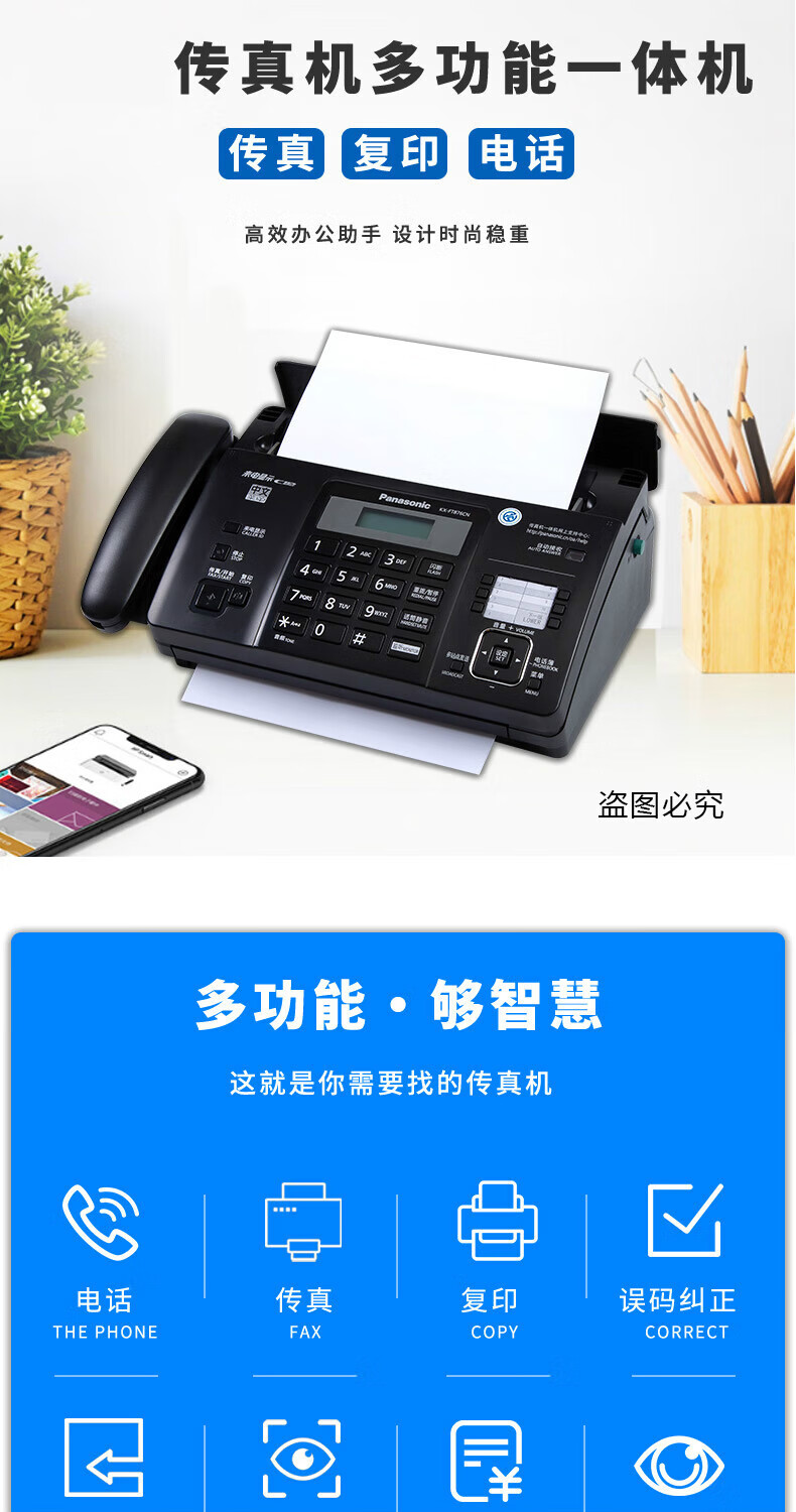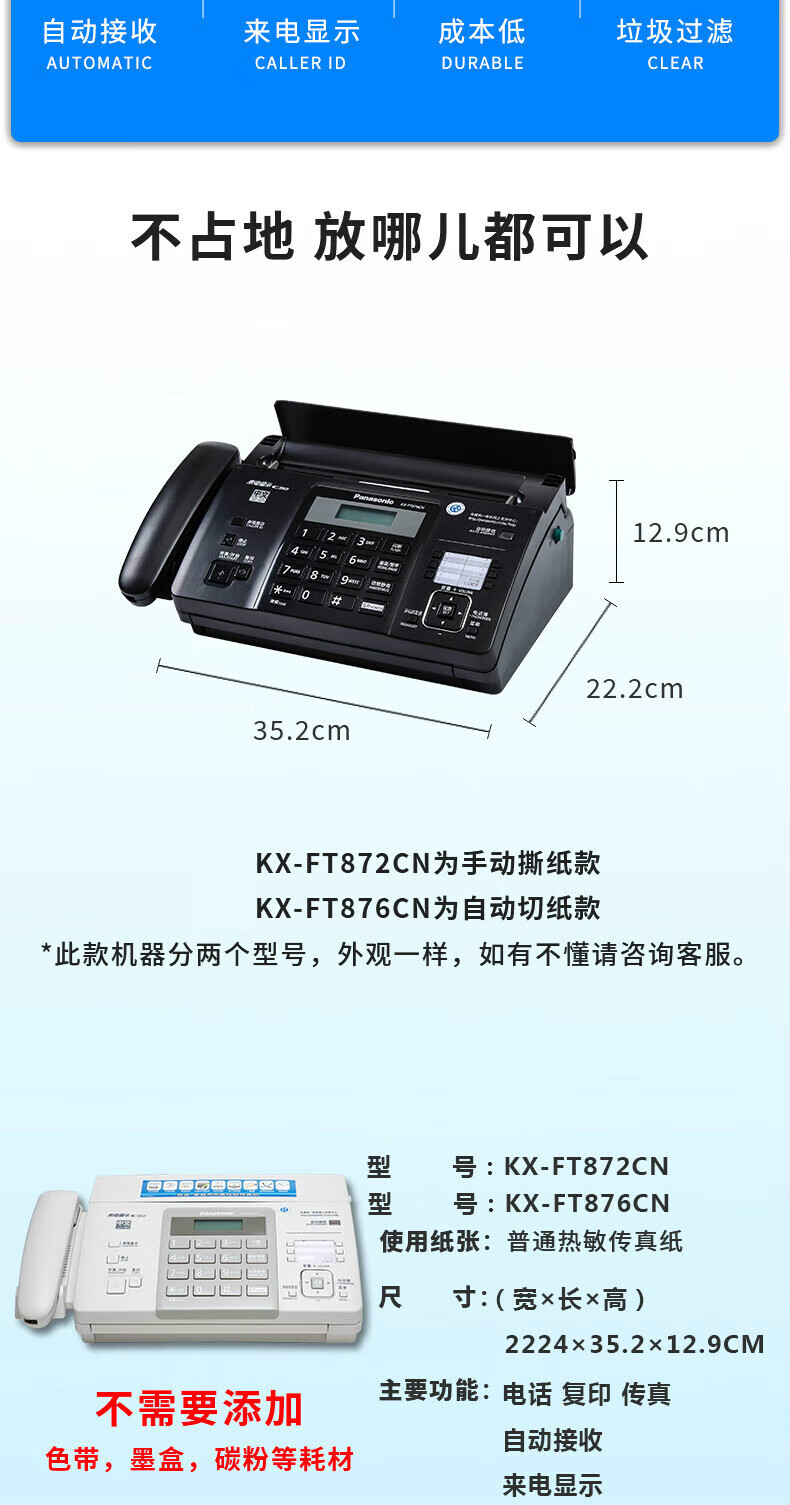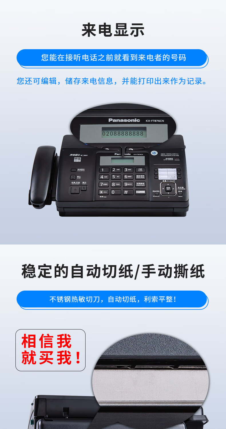 Brand new 876 fax machine thermal paper fax machine copy phone all-in-one caller ID black gold (Chinese) upgraded version automatic paper cutting model