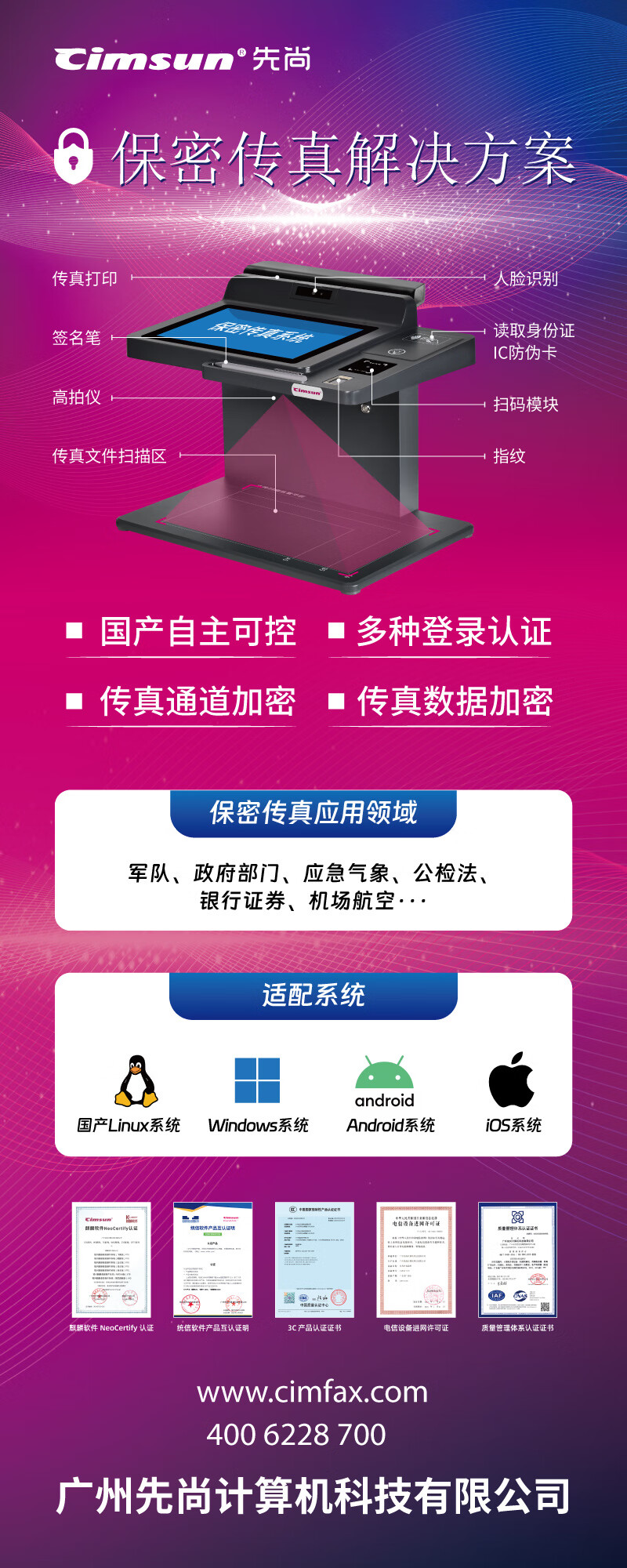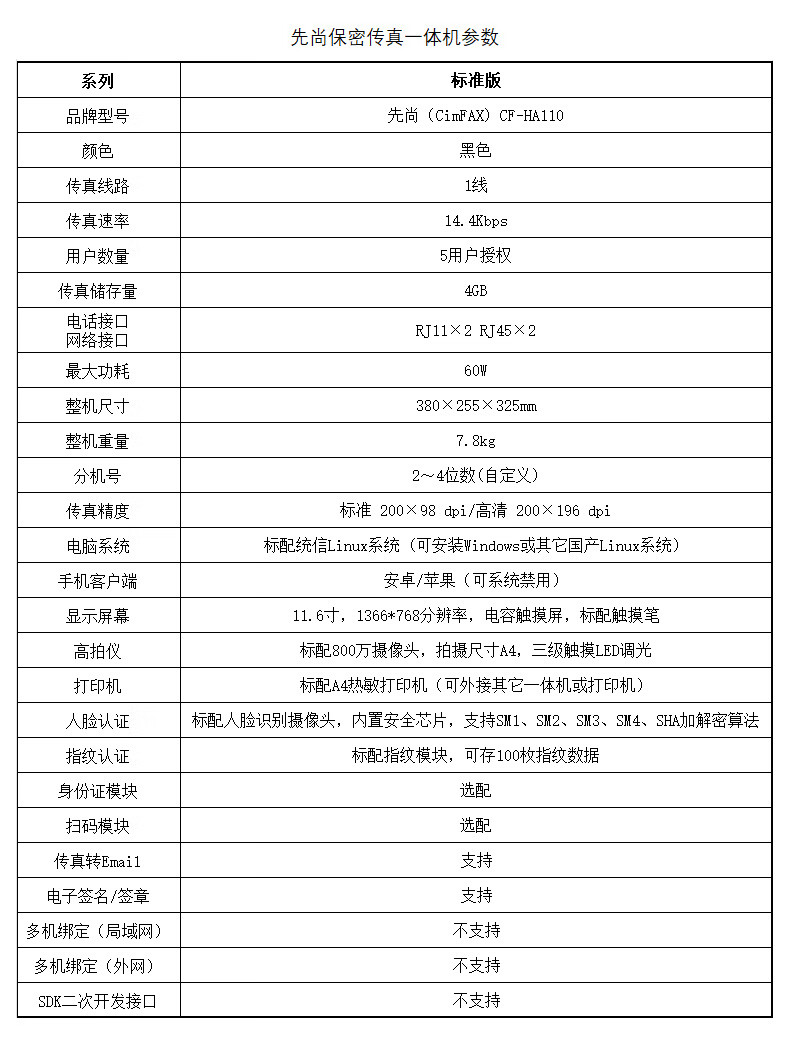 CimFAX all-in-one confidential fax machine, built-in scanner and printer, multiple confidentiality certifications, domestic Linux system, confidential fax machine server, standard version CF-HA110