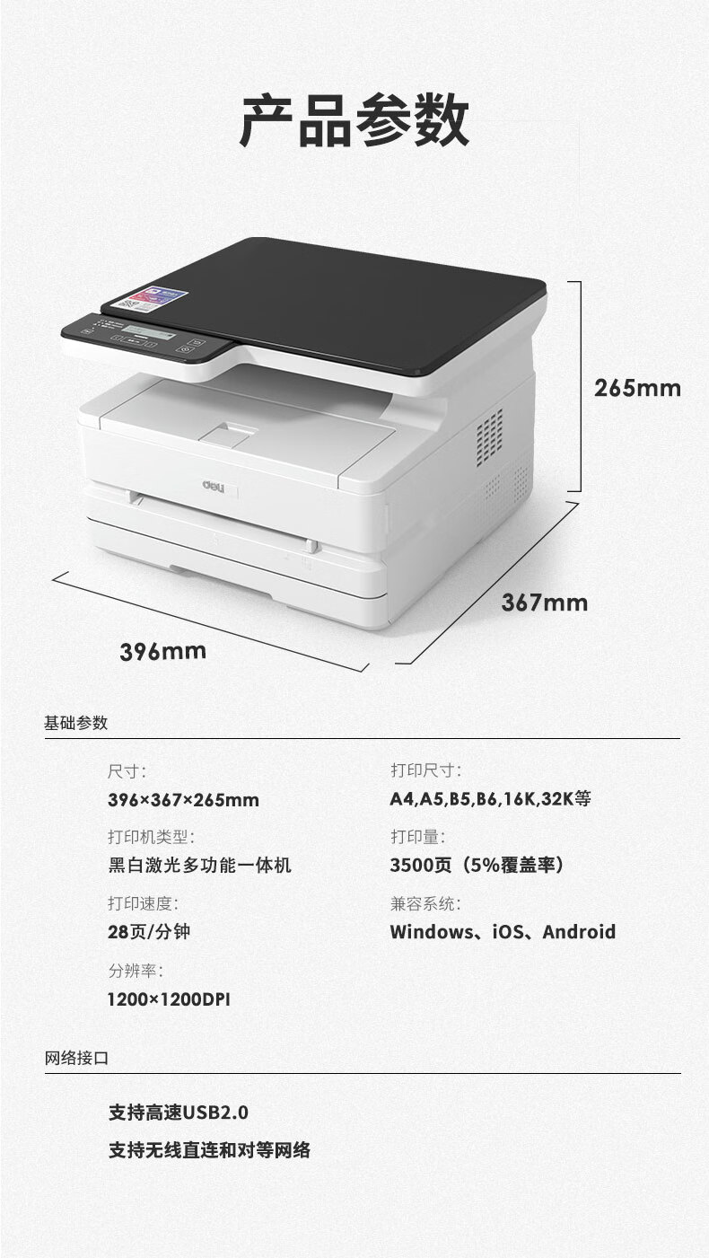 Deli M2500DW black and white laser printer scanning copy printing all-in-one office dedicated home small mobile phone wireless remote copier commercial multi-function printer M2000dw (automatic double-sided + mobile phone wireless)