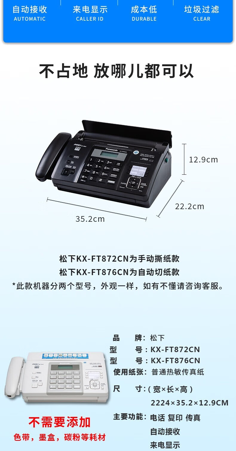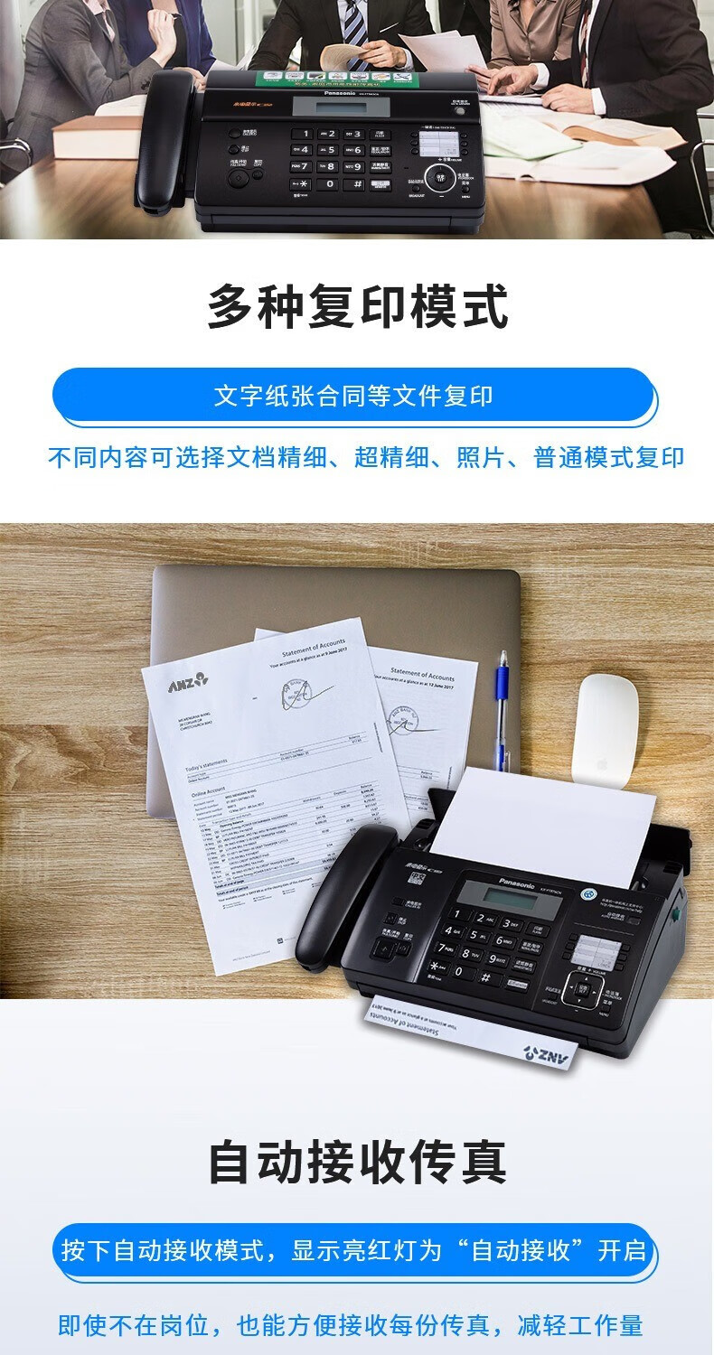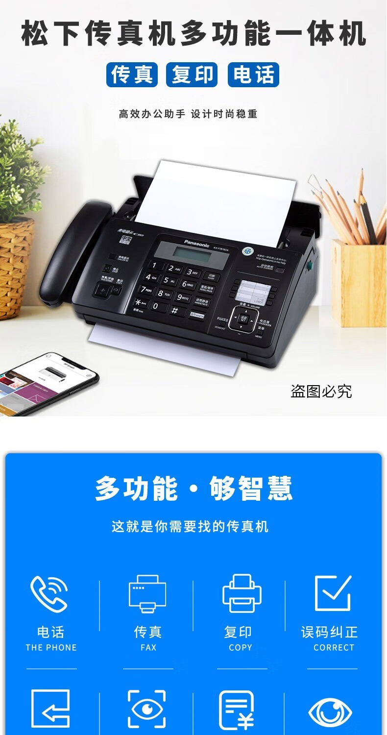 SF Express brand new fax machine thermal paper fax machine copy phone all-in-one caller ID SF Express Panasonic Night Black (Chinese enhanced version) high configuration automatic paper cutting