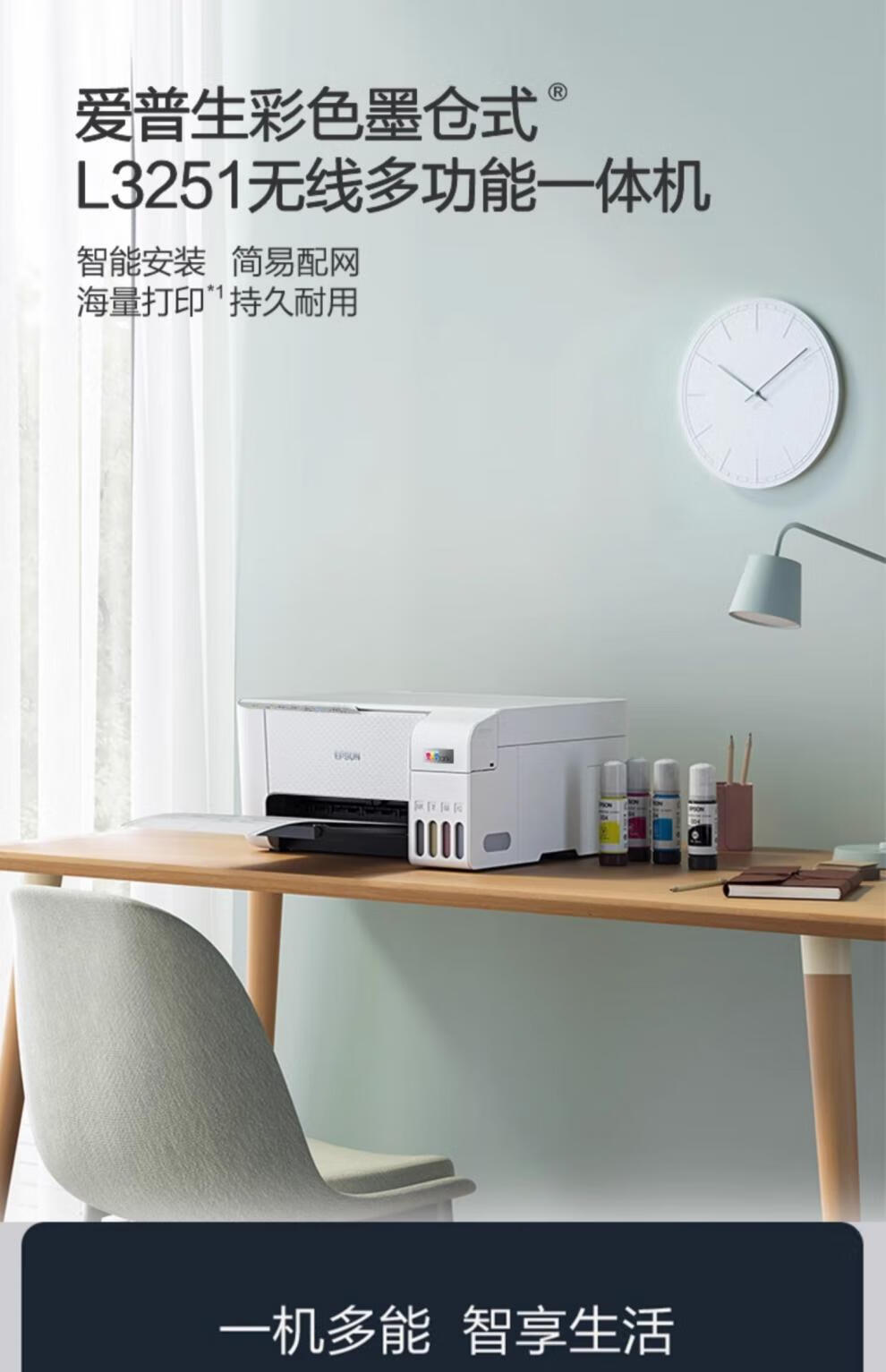 Epson (EPSON) printer L3151/L3153/L3253/3251 household small inkjet wireless mobile phone color copy and scan for multi-functional all-in-one machine student homework photo A4 unpacked and used does not support returns Upgraded L325 series black none package one