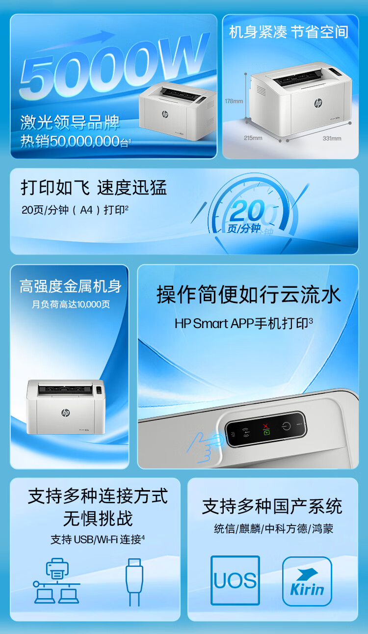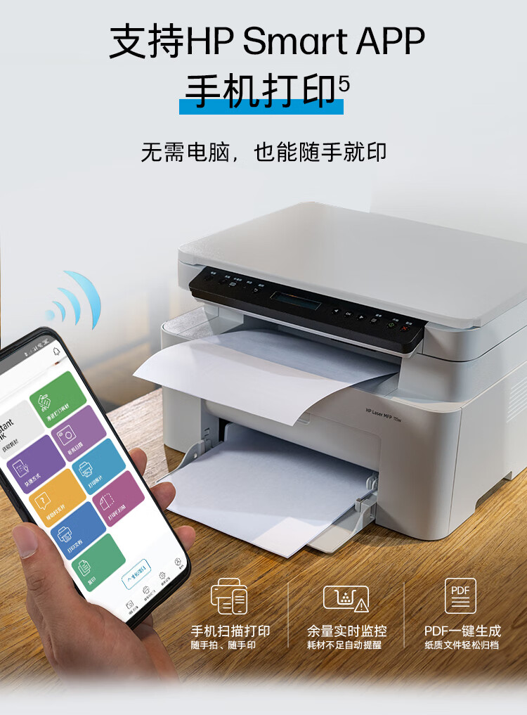 HP (HP) 105w 115w black and white laser mobile phone can be connected to a wireless printer all-in-one A4 copy and scan small home home student homework office dedicated 101w 111n 105w only printing function, wireless + USB connection official standard