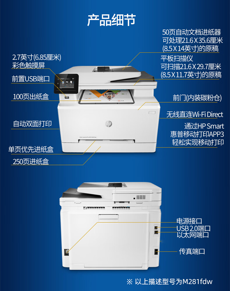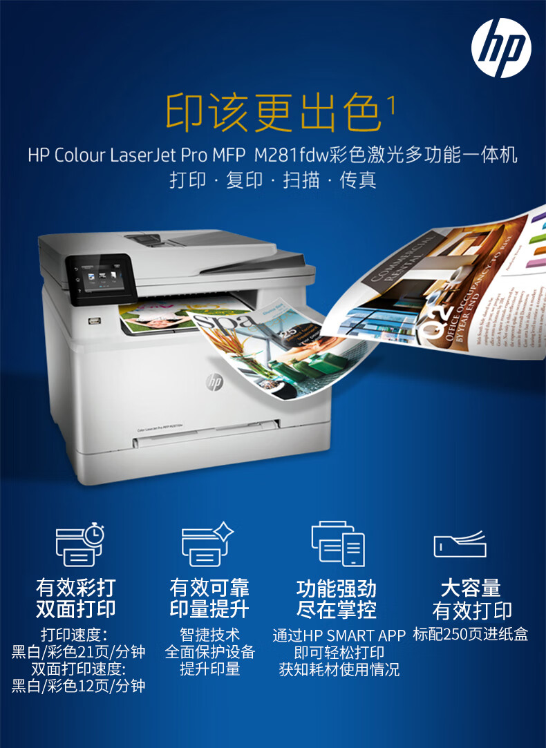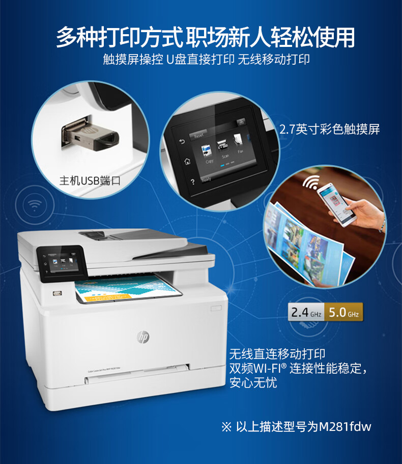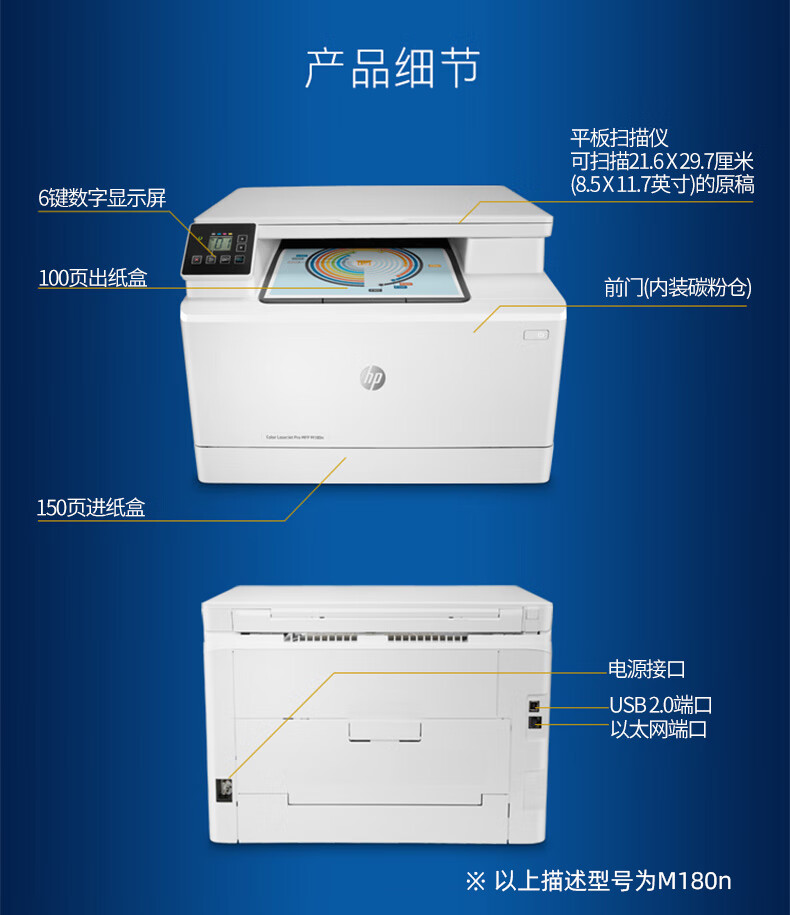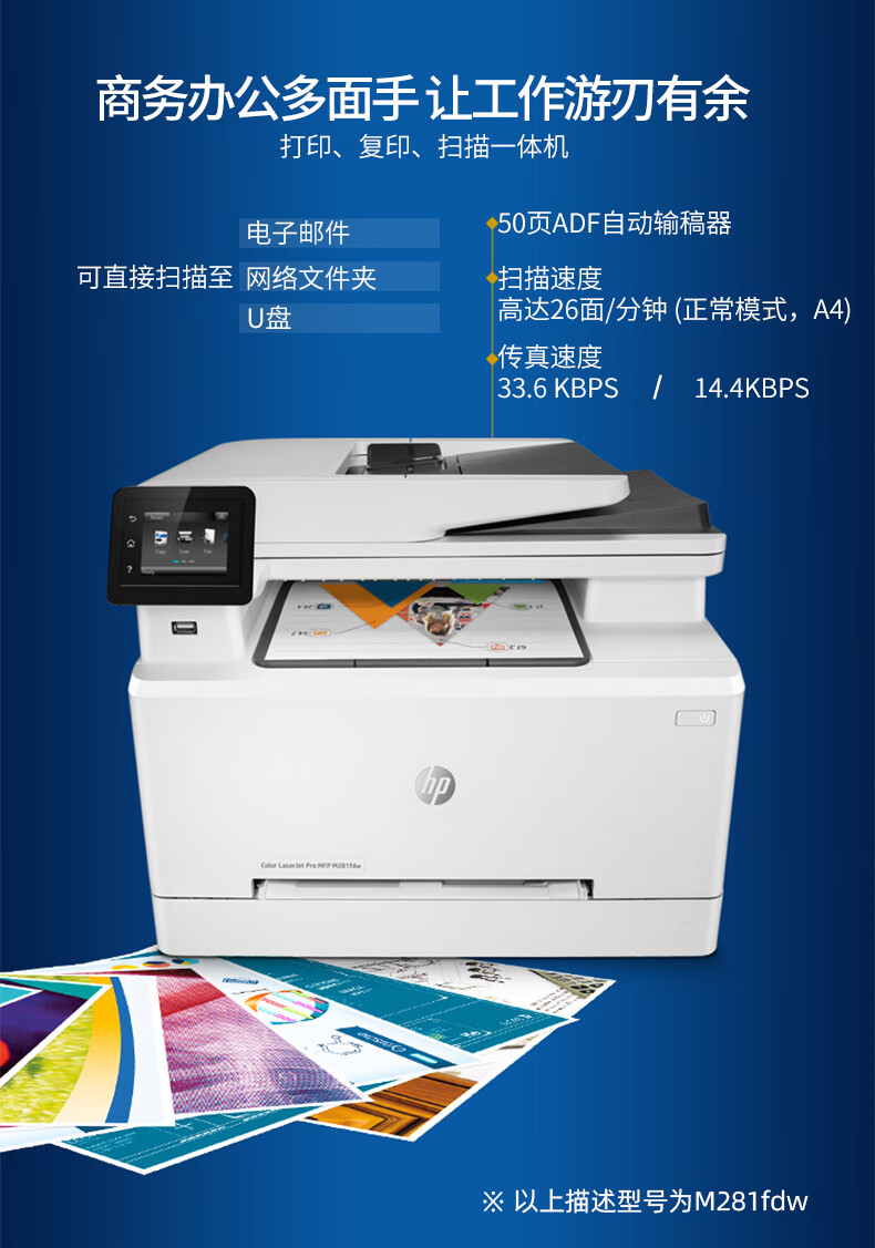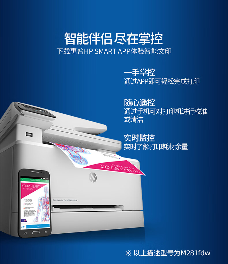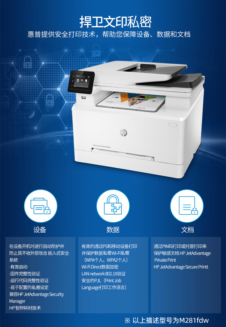 HP (HP) M180n color laser M181fw multi-function printer all-in-one copy scanning A4 business network office business three-in-one M281fdw M280n M281fdw (automatic double-sided + document feeder + wireless network + fax) Package 2