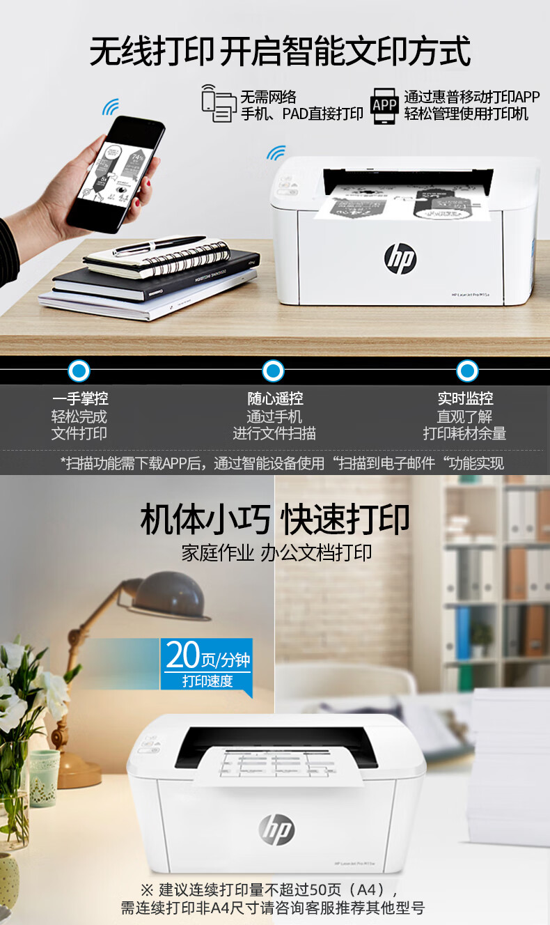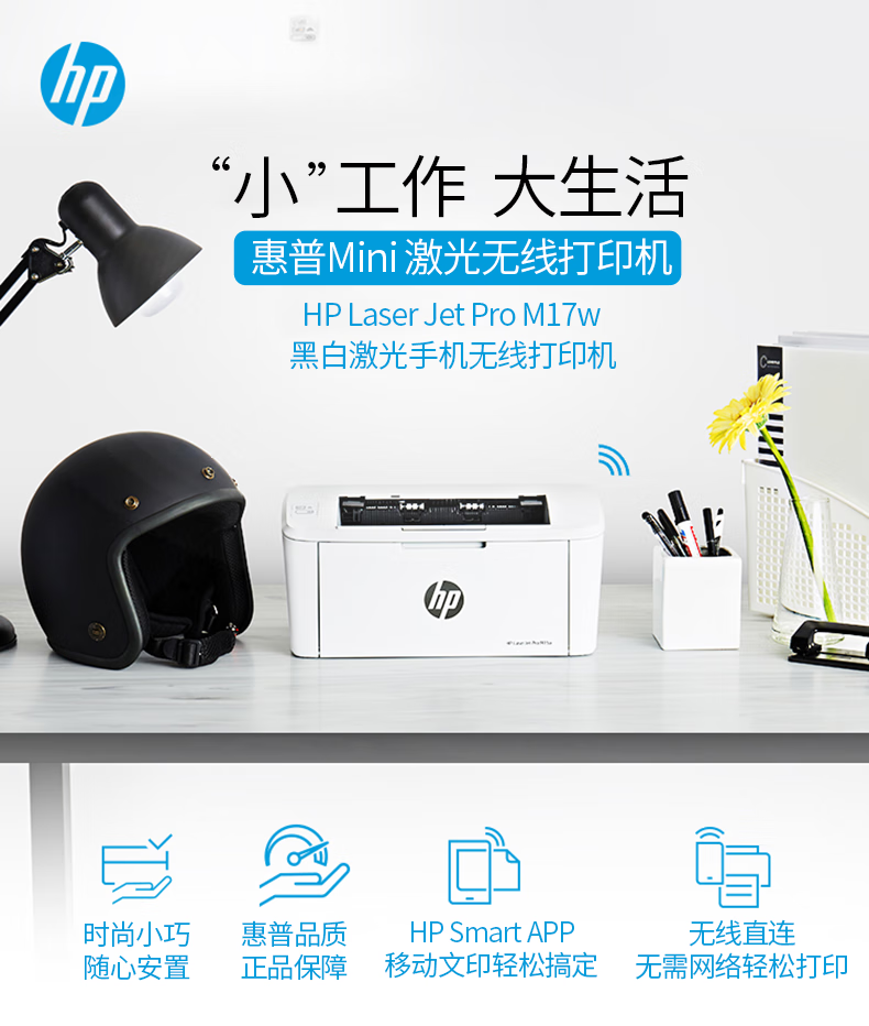 HP M17W black and white laser wireless printer can be connected to mobile phone wifi student homework materials home small business mini office A4 remote office M17w_Wireless WiFi single printing function (supports mobile phone photography and copying official standard configuration_compact body