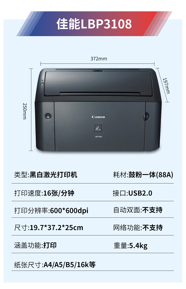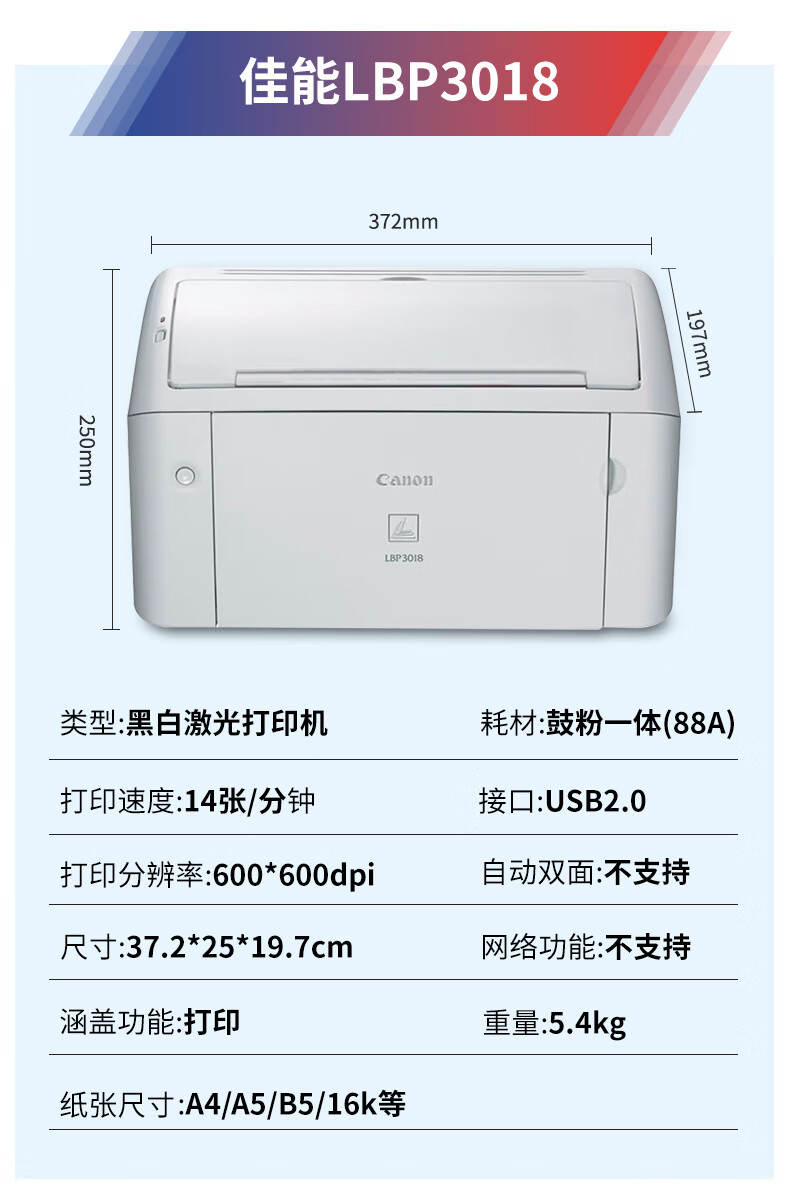 Canon 2900 3018 6018 3000 laser printer A4 home office black and white certificate Canon 3018_3108 affordable model standard_complete accessories and easy to use