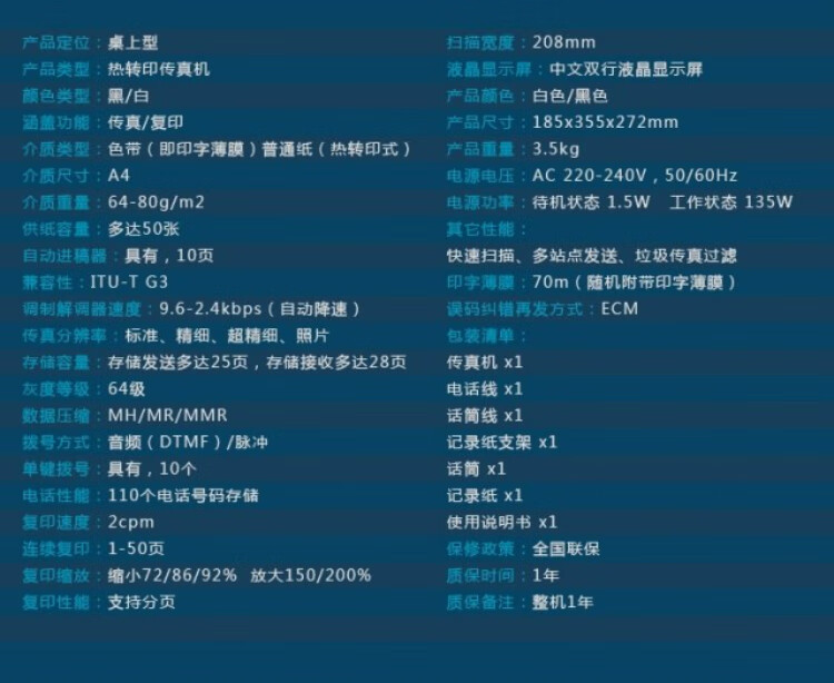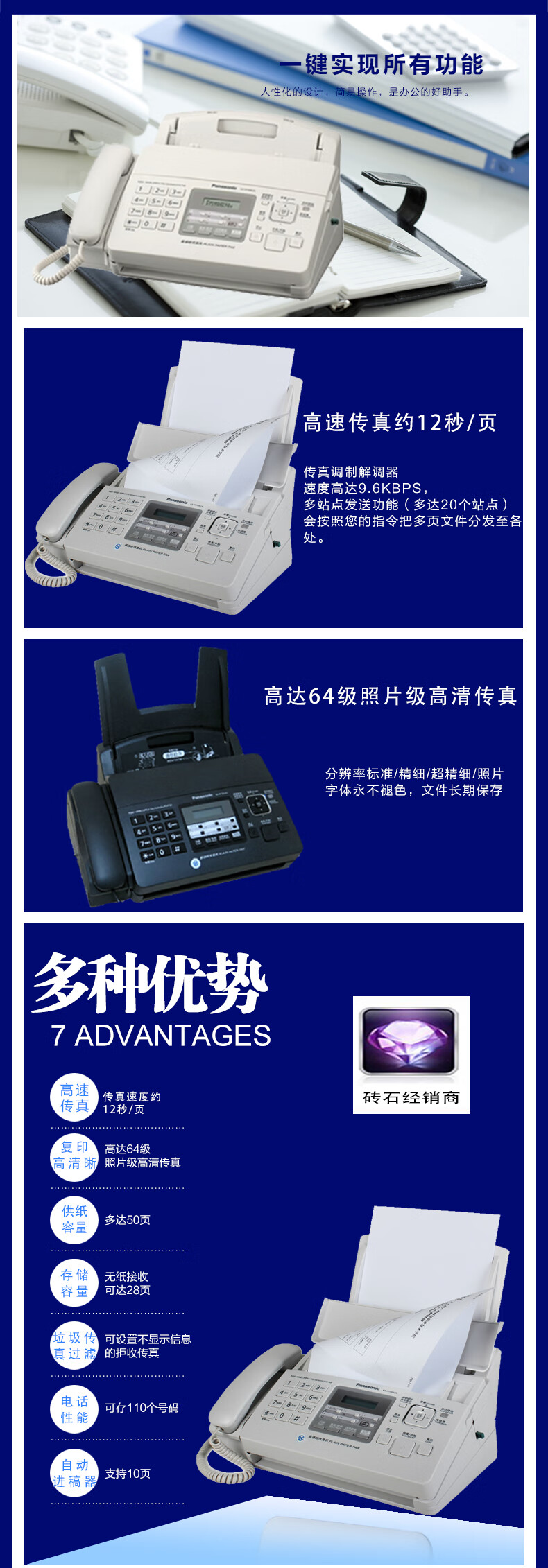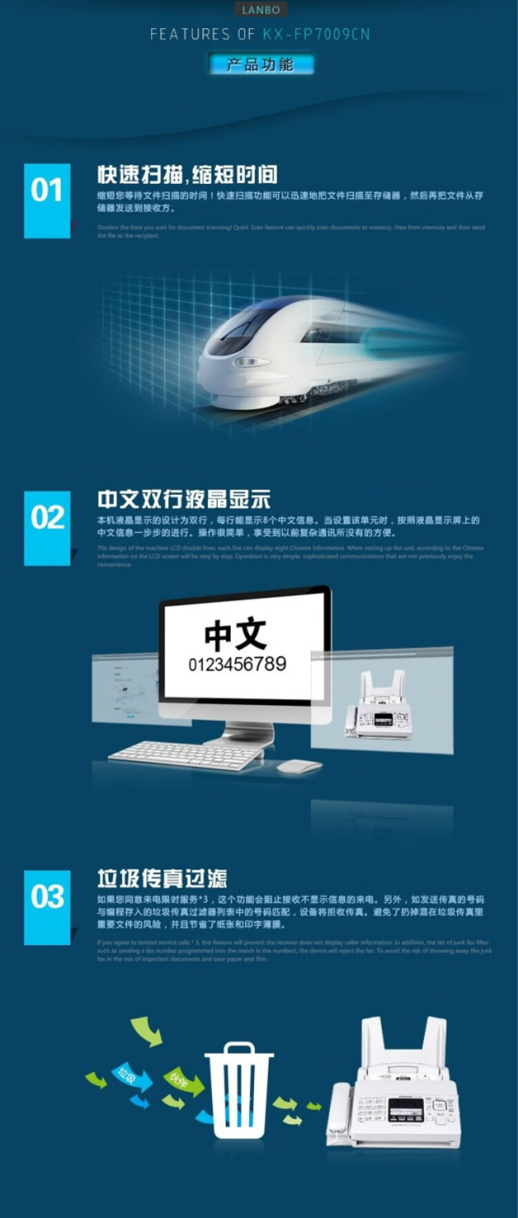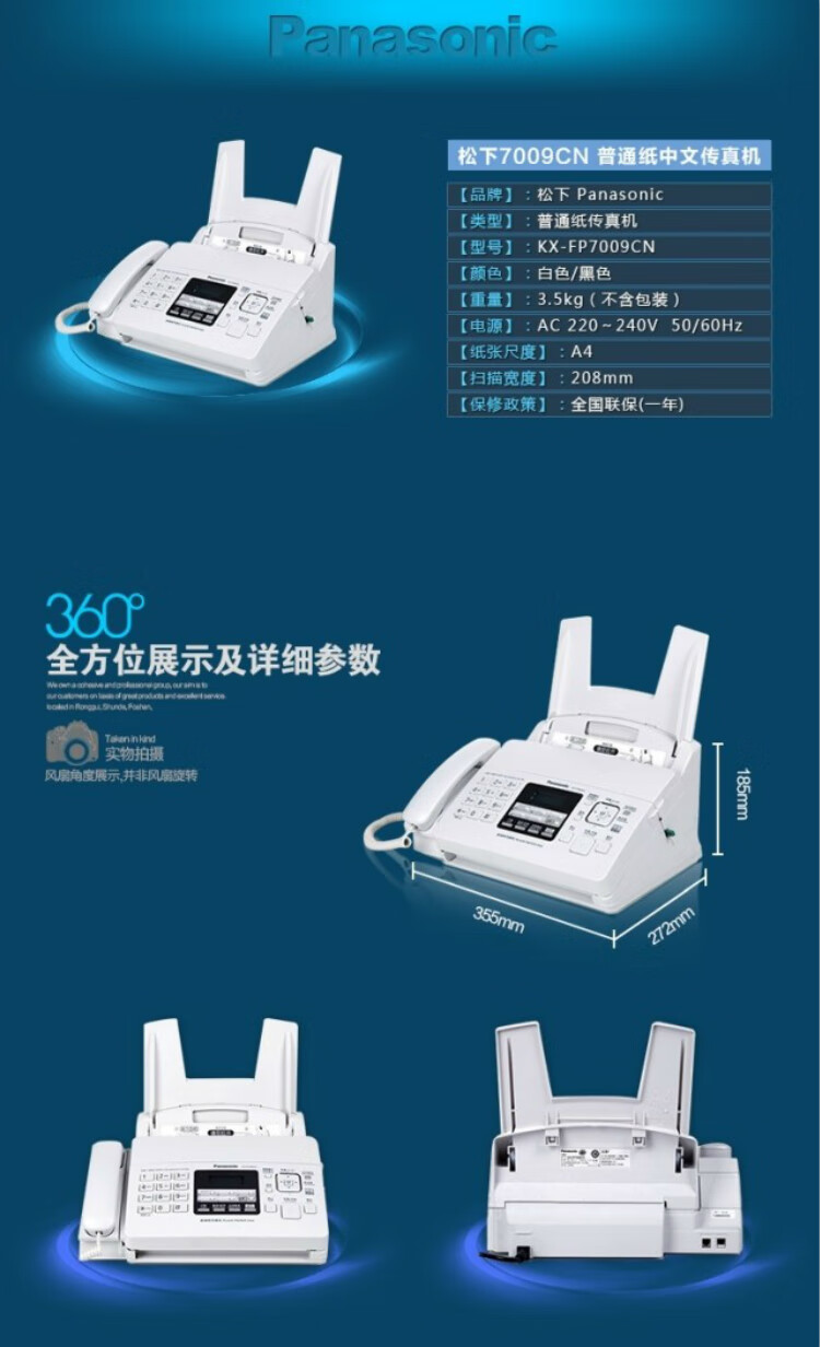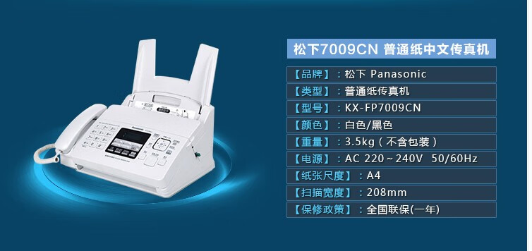 Brand new KX-FP7009CN plain paper fax machine A4 paper Chinese display fax machine and telephone all-in-one machine 7006 English upgraded version_white