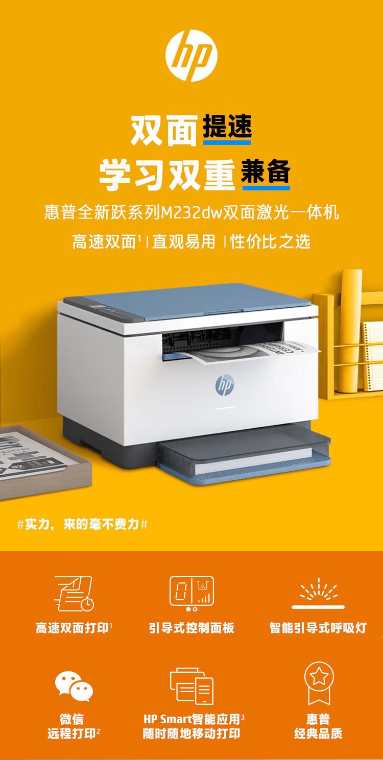HP M232dw home laser printer, automatic double-sided wireless student home all-in-one machine, high speed and efficient (low cost, small size)