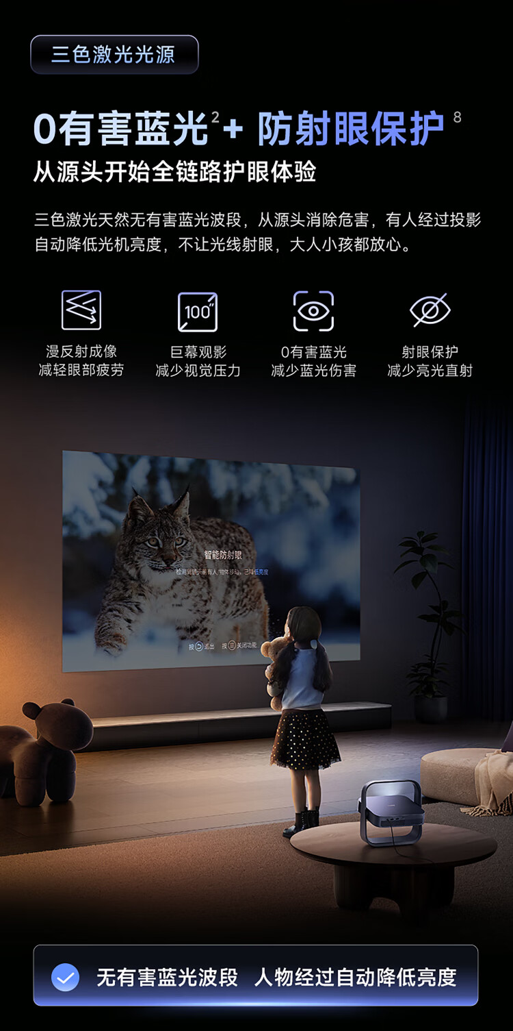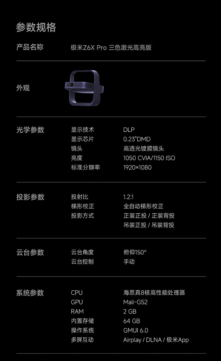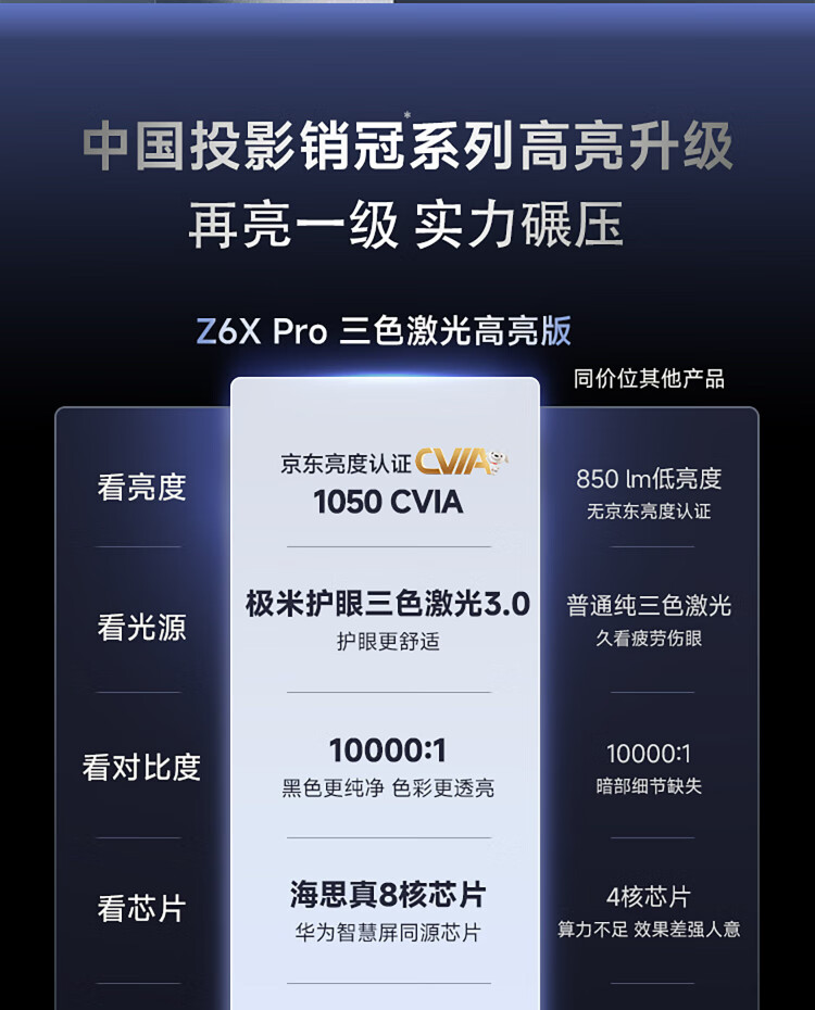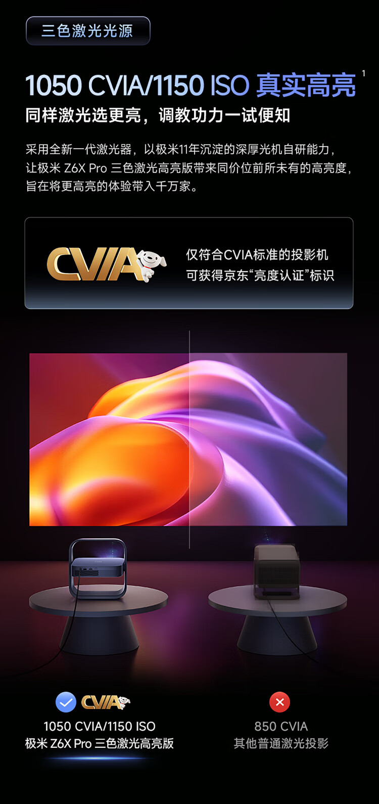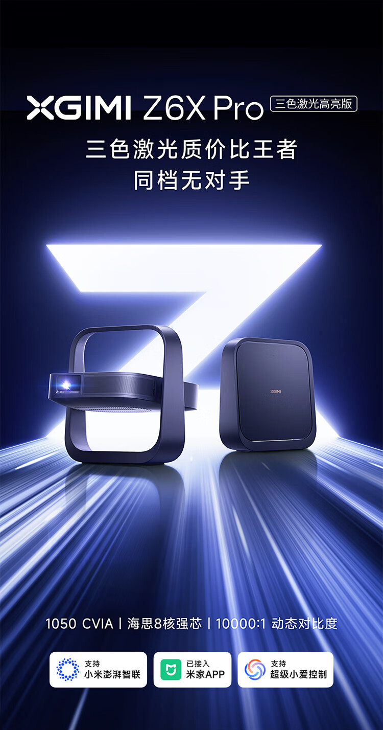 XGIMI Z6X Pro three-color laser highlight version projector for home use thin and light projector HD integrated pan/tilt 2-year warranty first-level energy efficiency national subsidy